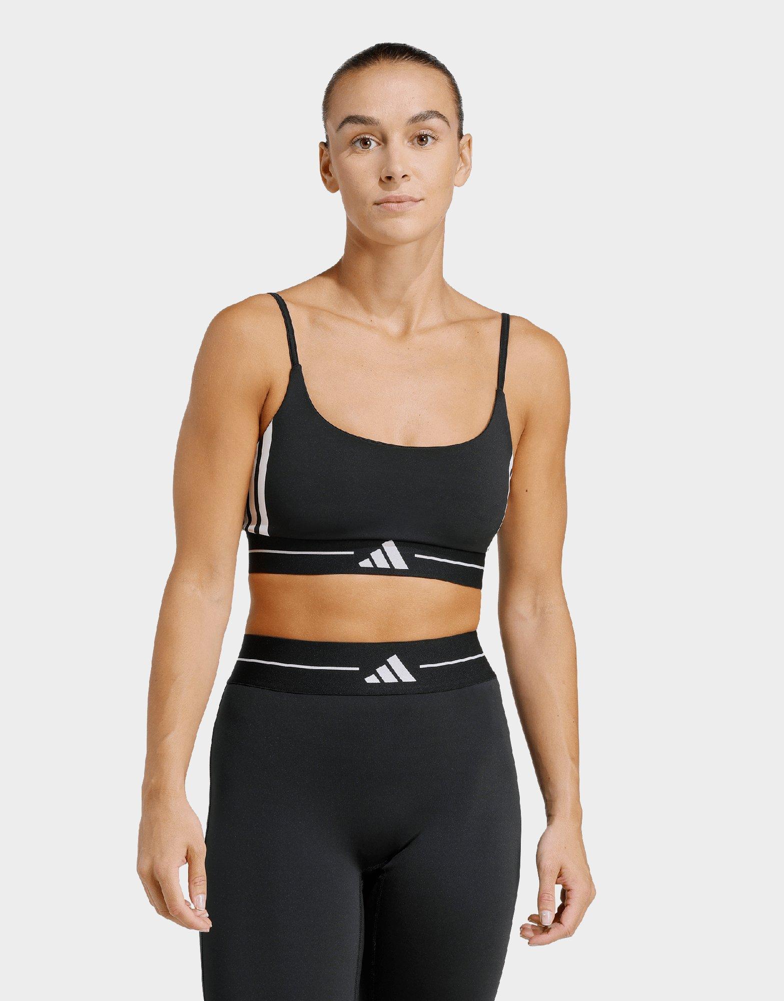 Power through your workout with this women's Adidas Hyperglam sports bra, a JD exclusive designed for performance and style. The standard fit features the iconic 3-Stripes in a sleek black and white colourway that pairs effortlessly with any gym kit. Adidas engineering delivers the support you need whether you're hitting weights, running, or flowing through yoga. This scoop-neck design combines functionality with the Hyperglam aesthetic for confidence-boosting comfort. Style Code: KB3683