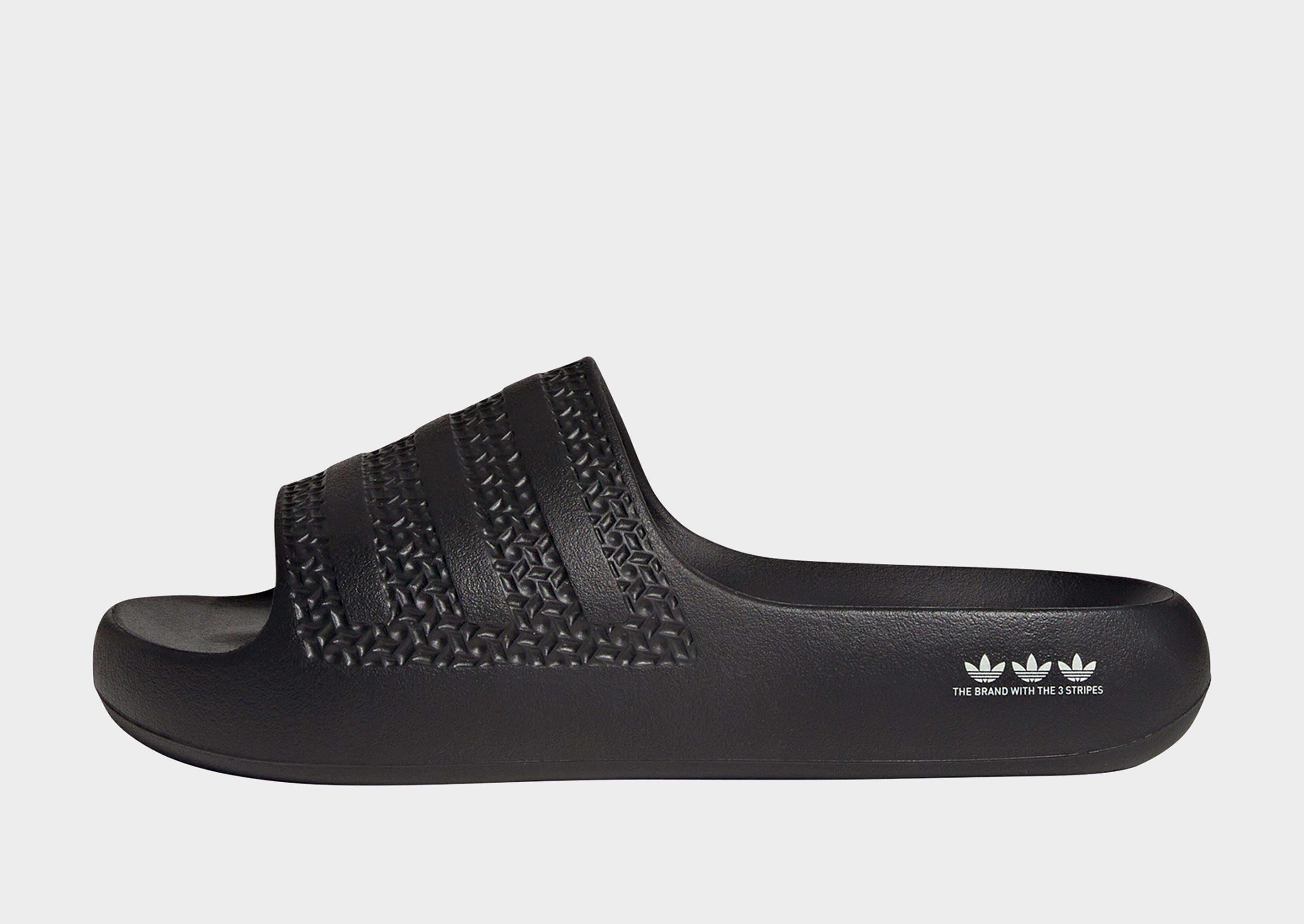 On off-duty days, slip on these women's Adilette Ayoon Slides from adidas Originals. Coming in a Black colourway, these neutral slides are made with ultra-smooth, lightweight EVA foam with a one-piece construction. They sit on a chunky, cushioned footbed for a comfy step, while a rubber outsole delivers essential traction. Finished up with adidas' iconic 3-Stripes embossed to the top strap, and signature Trefoil branding on the sides.