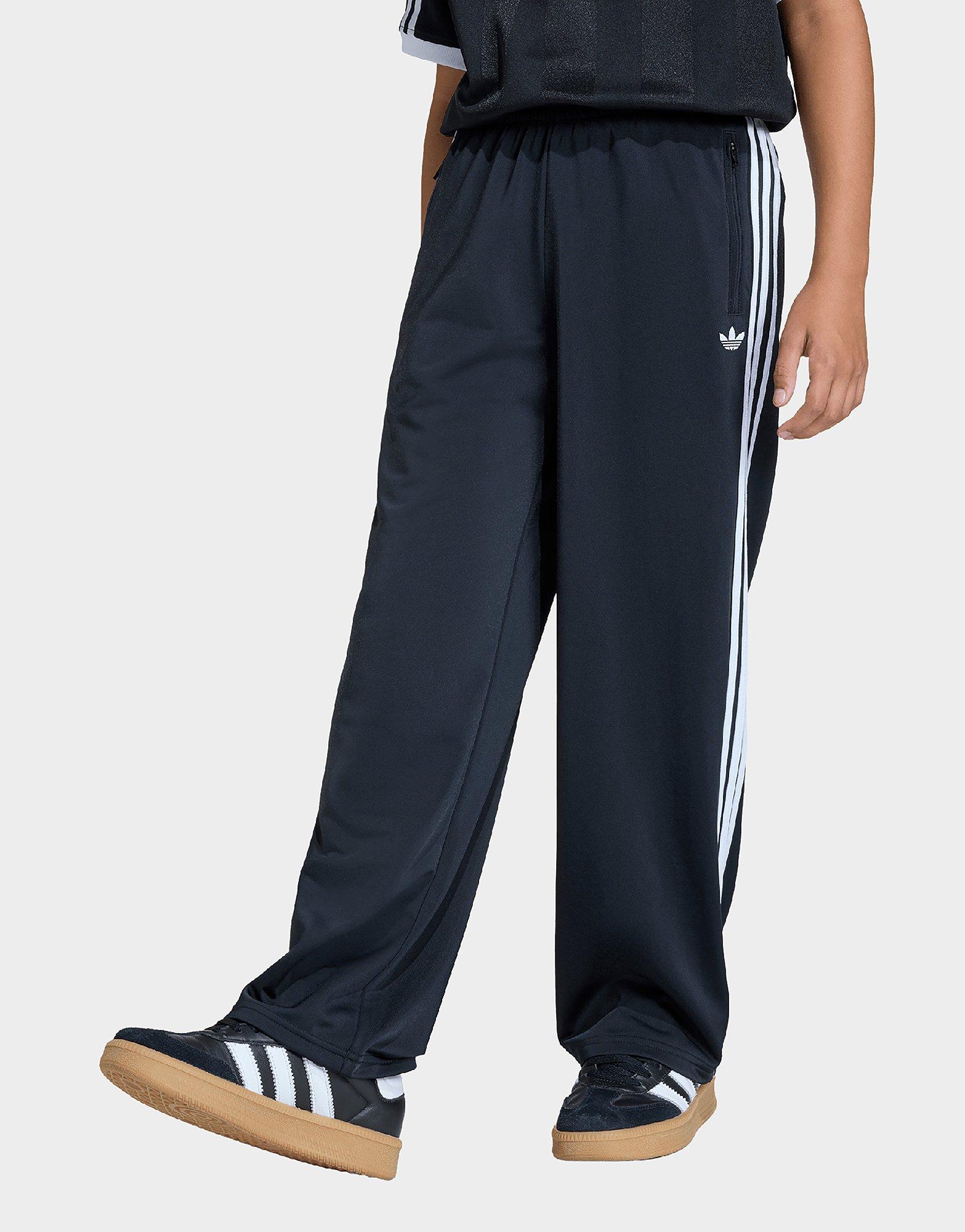 Get them started with heritage style in these junior's Adidas Firebird Track Pants, delivering iconic sportswear design. Featuring a standard fit with comfortable construction, they showcase classic Adidas branding on a black base with white detailing. Perfect for active kids, these track pants pair easily with Firebird jackets or casual tees. A timeless piece for any young Adidas fan.