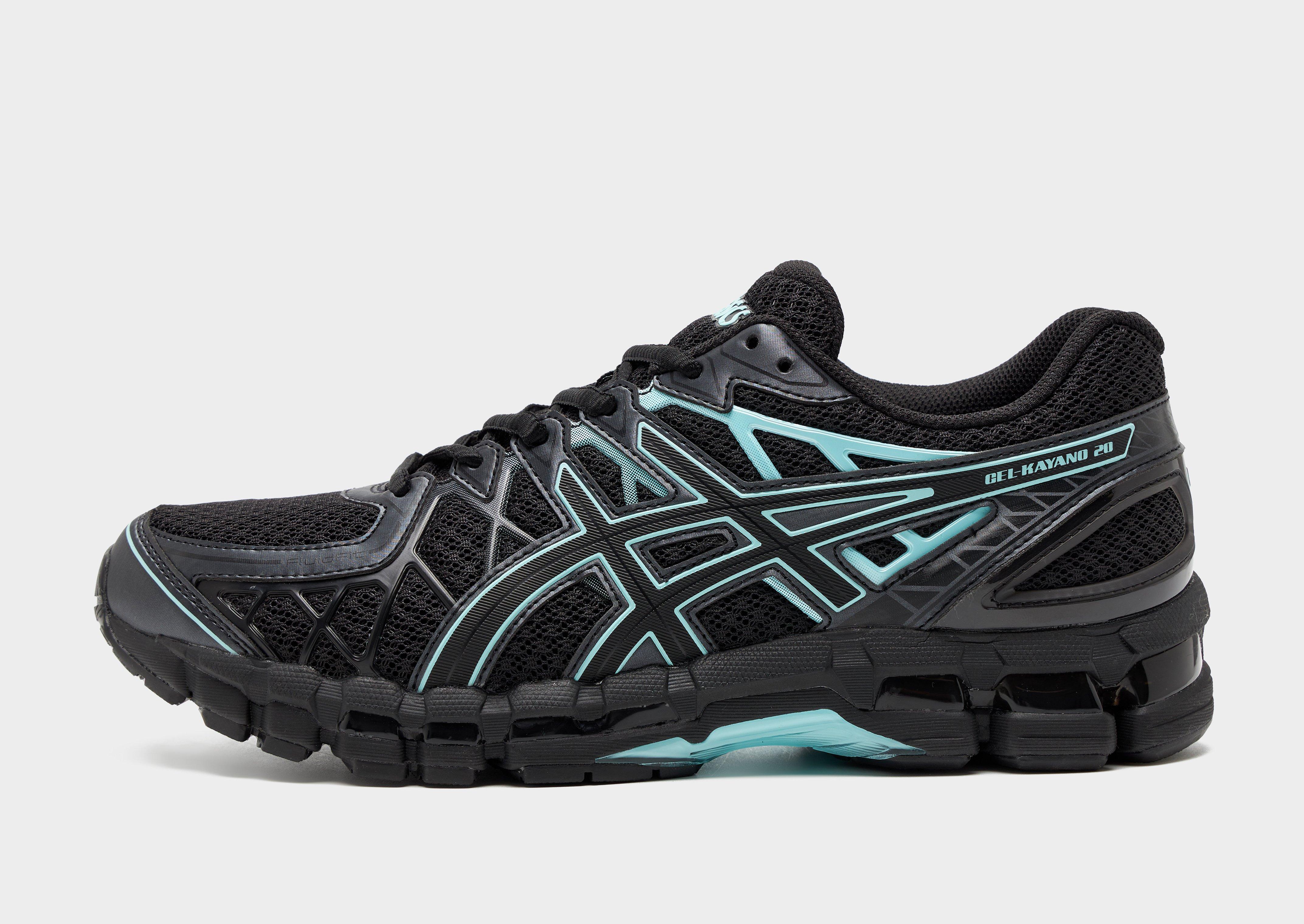 Get a 00s-tech style with these women's GEL-KAYANO 20 shoes from ASICS. In a Black colourway with Mint Green details, these JD-exclusive low-profile sneakers have a breathable mesh upper with synthetic overlays for a supportive feel. They feature a lace fastening to lock you in, a padded ankle collar for a snug feel and a TRUSSTIC support system. Underfoot is a foam midsole coupled with GEL technology for next-level cushioning and a rubber outsole for traction. Signed off with ASICS branding throughout. Style Code: 1203B149.001W