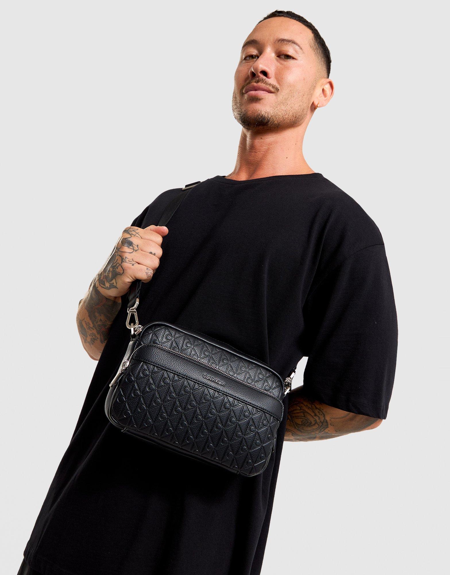 Elevate your everyday carry with this sleek Calvin Klein crossbody bag, crafted in premium black faux leather with an all-over embossed CK monogram pattern. The design features two zip compartments - each with metallic hardware - for organised storage and easy access to essentials. A pebbled texture adds a refined touch, while the adjustable woven strap ensures comfortable, customisable wear. Finished with subtle Calvin Klein branding on the front, this bag delivers a modern, minimalist look that suits any outfit. Style Code: 4D3203G_UB1