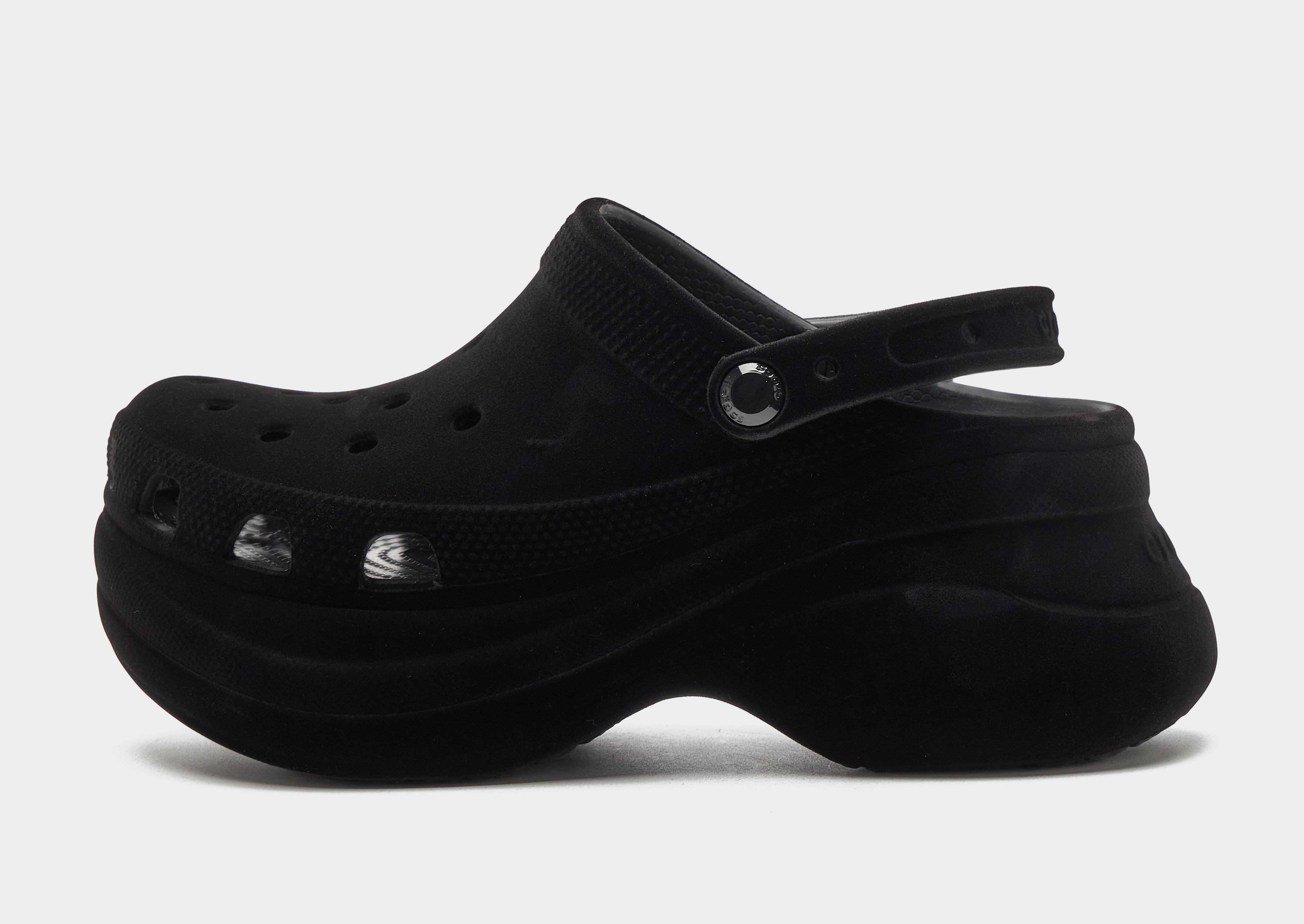 Add an iconic look to your footwear rotation with these women's velvet Bae Clogs from Crocs. In a Black colourway, these clogs are made with a velvet upper for a luxe look and feel. They have a lightweight Croslite upper that has ventilation ports for breathability, and feature a platformed, soft footbed that offers responsive cushioning with every step. Wear them around the house, to the shops, and pull the heel strap down to lock in. Style Code: 211919-001