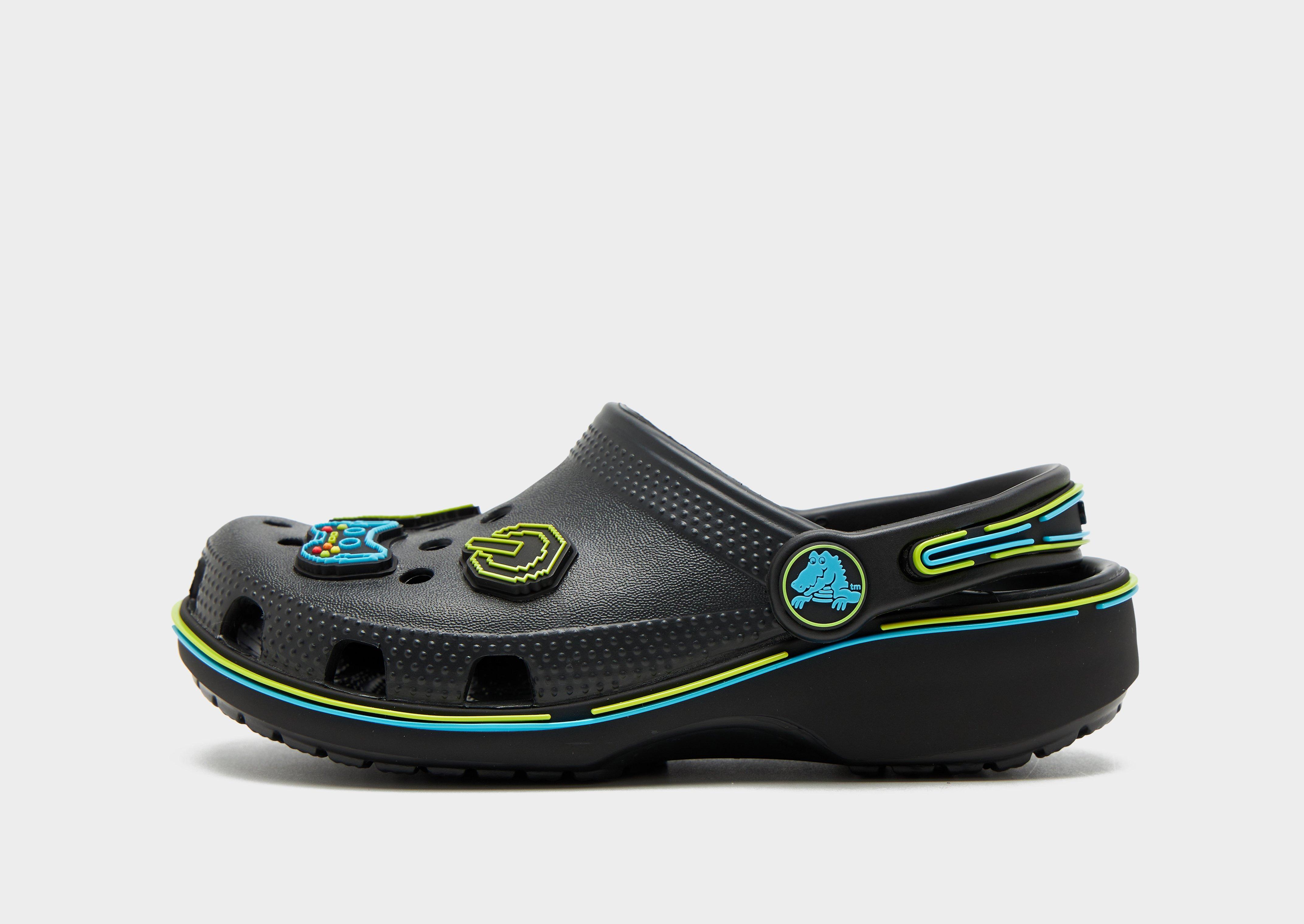 Keep them comfortable with these children's Crocs Classic Clog sandals, exclusive to JD. Designed with a standard fit and iconic Crocs comfort, they feature black with game-inspired detailing for playful style. The lightweight construction and easy slip-on design make them perfect for active kids. Built with Crocs' legendary cushioning and fun graphics, these clogs are ideal for everyday adventures. Style Code: 213101-001