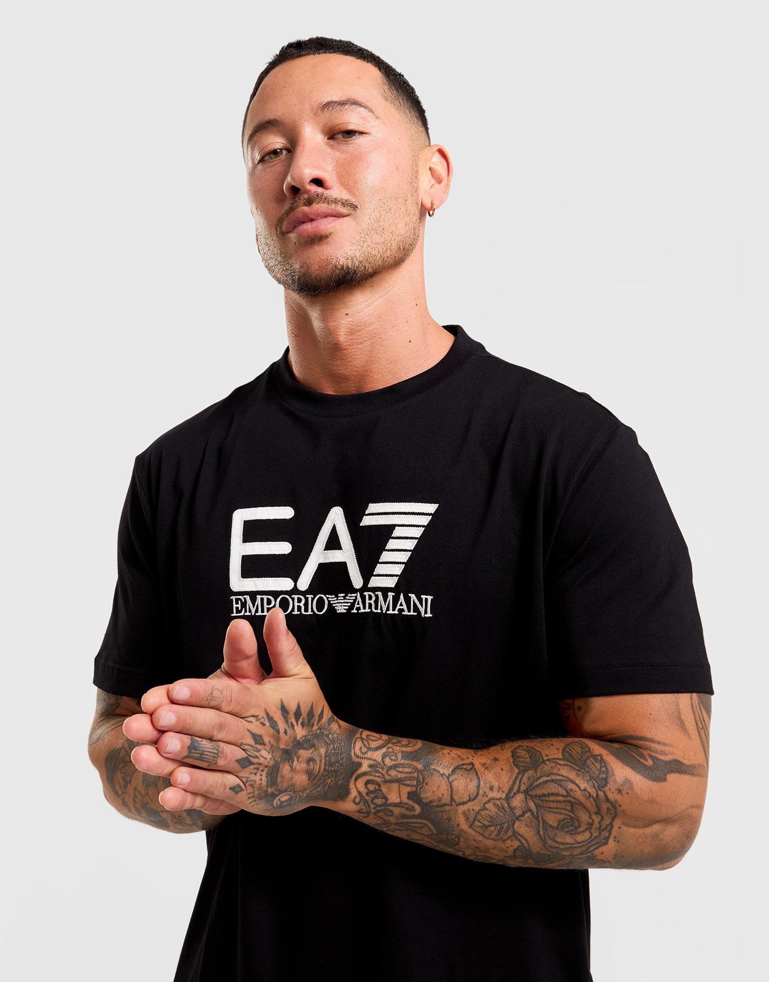 Keep it classic with this EA7 tee, crafted from a soft cotton-blend fabric for everyday comfort. The standard fit and short sleeves keep things versatile, perfect for pairing with joggers or denim. Finished in a Black colourway with signature EA7 detailing.