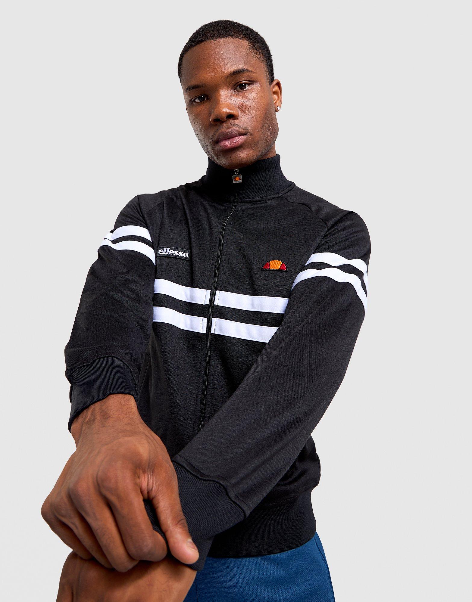Zip into style with this men's Ellesse Rimini Full-Zip Track Top, delivering retro athletic vibes. Standard fit with long sleeves and stretchy ribbed cuffs offers comfortable layering. Black colourway with white detailing keeps your look clean and classic. Full zip design provides versatile wear options for any season. Style Code: SHB00892038