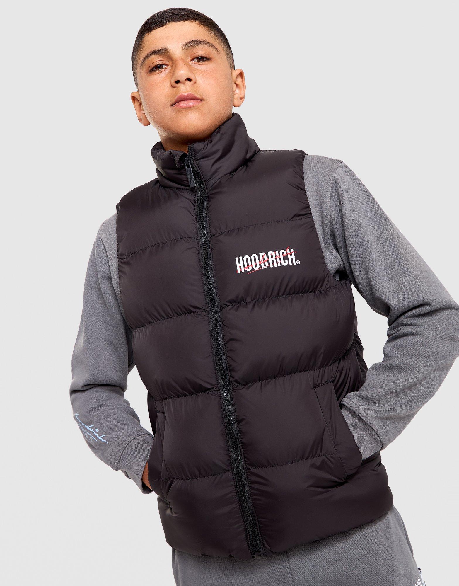 Keep them warm with this junior's Hoodrich Padded Lynk Vest, exclusive to JD. Designed with a standard fit and a ribbed hem, it delivers insulated comfort in black with white and red accents. The padded construction offers versatile layering for cooler days while the bold colourway adds streetwear edge. Built for comfort and contemporary style, this vest is a practical wardrobe essential. Style Code: HJ-0226-0014