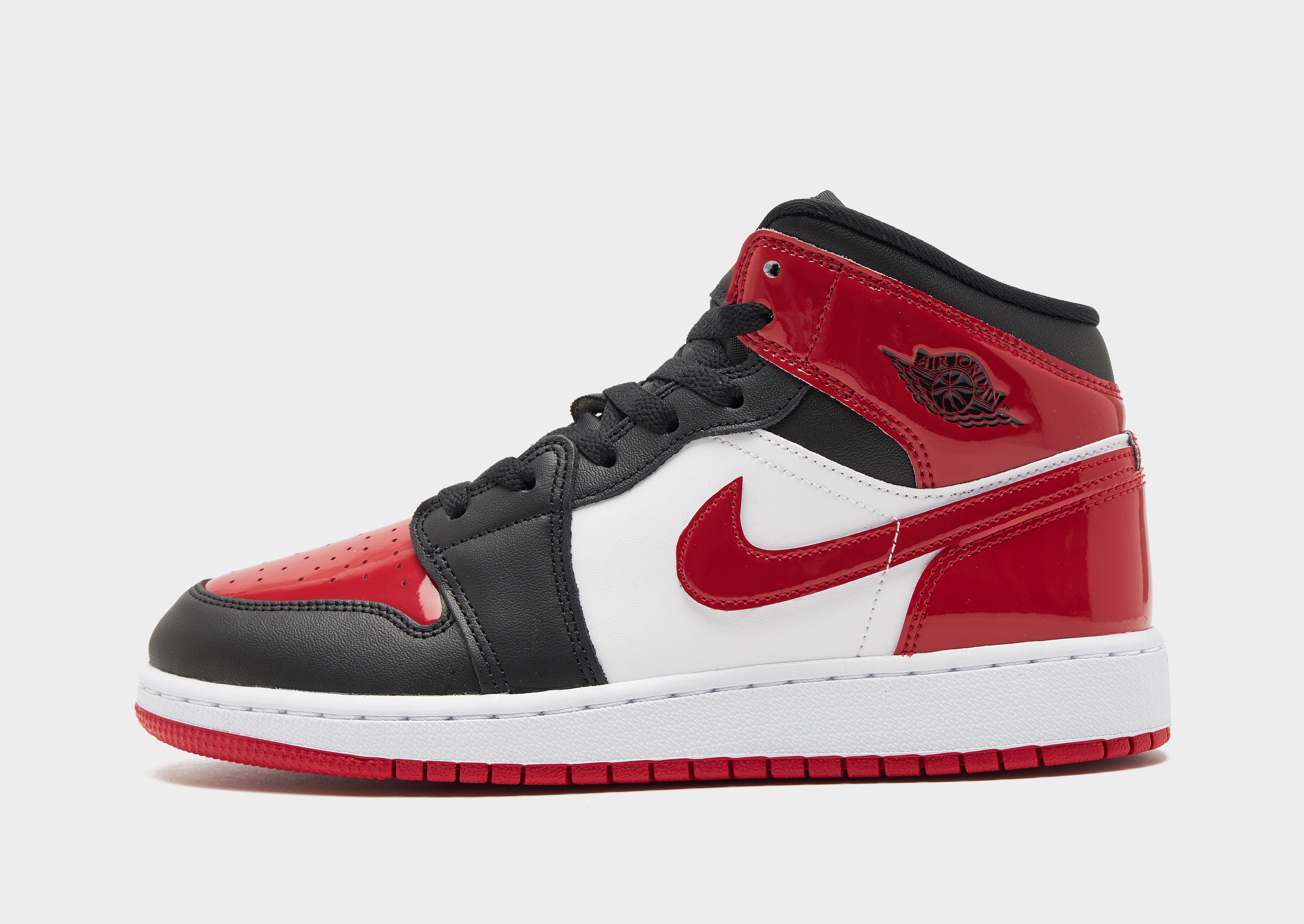 Keep your rotation iconic with the epitome of sneaker culture: the Air Jordan 1 Mid. Born from the collaboration between Nike and basketball legend Michael Jordan in 1985, the AJ1 changed the game forever, shattering conventions with bold colours and silhouettes. In a Black colourway with Red details, these mid-top shoes are crafted from a patent leather, synthetic leather and textile blend across the upper for support. Underfoot, the foam midsole combines with Nike Air cushioning for lightweight comfort, while the durable rubber outsole has pivot circles for retro-inspired traction. With a padded ankle collar and perforations on the toe, these kicks are finished off with the Swoosh and Air Wings logo to the sidewalls and the iconic Jumpman to the tongue. Decades later, the AJ1 remains an icon of style and athleticism, transcending generations with its timeless design and legendary status. Style Code: HV4399-006