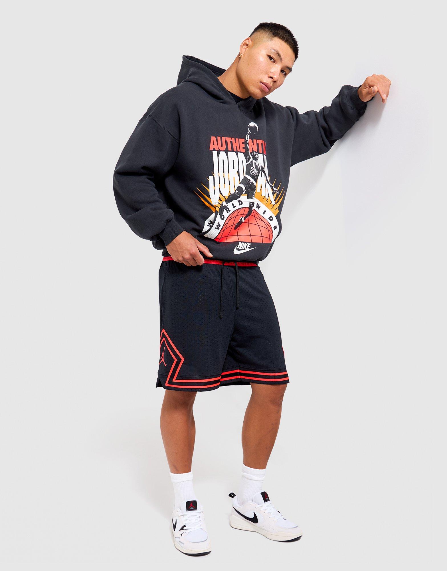 These men's Diamond Mesh Shorts from Jordan are built for performance with moisture-wicking Dri-FIT mesh fabric that helps keep you dry and comfortable during high-intensity workouts. The lightweight, breathable mesh ensures excellent airflow while the standard fit keeps the silhouette clean and versatile. Finished in a bold black-and-pink colourway, they deliver athletic edge and on-trend streetwear energy - perfect for gym sessions, courts, or casual summer wear. Style Code: HF9910-014