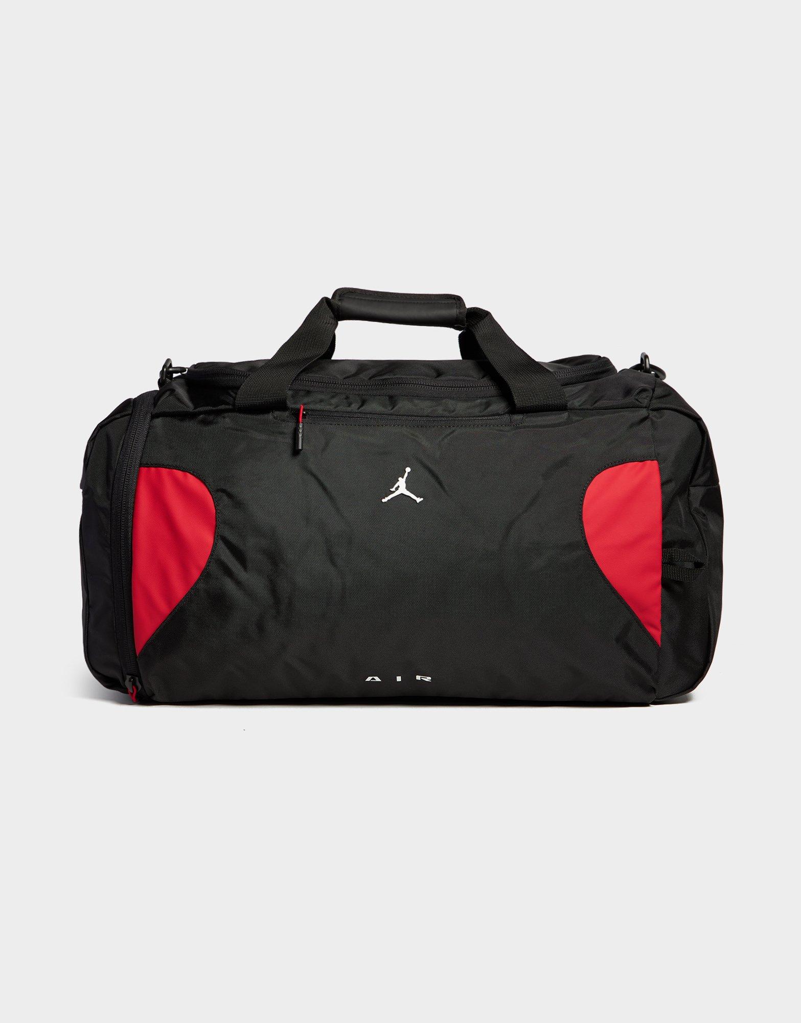 Step up your carry game with the Jordan Air Jordan Element Duffle Bag in black, red, and white - a bold, sport-culture holdall built for athletes and streetwear enthusiasts who refuse to compromise on style. The striking black, red, and white colourway channels classic Jordan Brand energy, while the spacious main compartment and practical organisation throughout make this men's Jordan duffle bag a reliable everyday carry for training, travel, and everything in between. Finished with bold Jordan Jumpman branding for undeniable sport-culture credibility. Style Code: MM9196KR5
