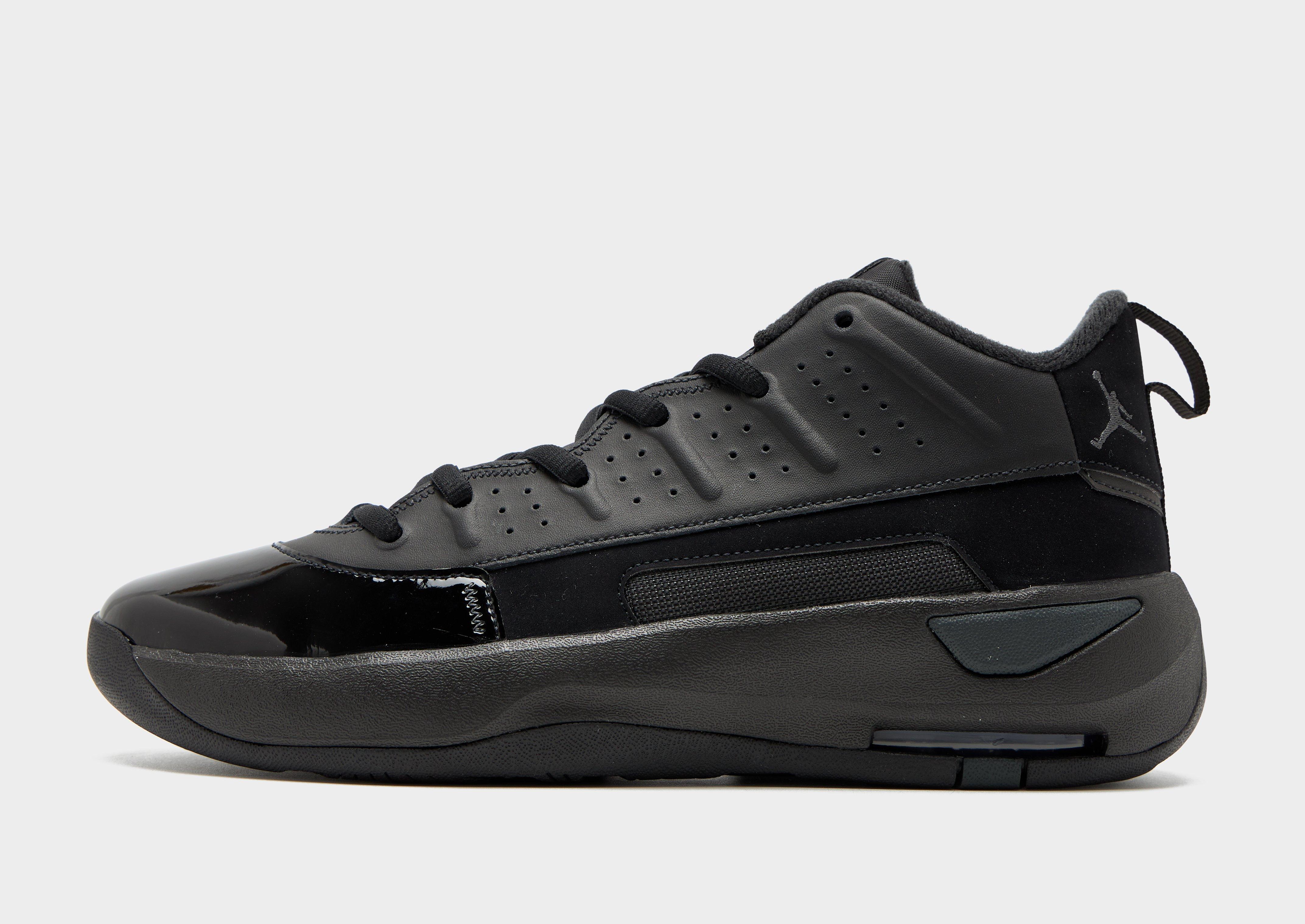Level up your kick game in hoops-inspired style with these men's Max Aura 7 sneakers from Jordan. In a Black colourway with Anthracite details, these basketball shoes are cut from smooth leather with breathable textile for a premium feel and durable wear. They feature a lace fastening to lock you in, with a padded collar that uses extra plastic for support. Underfoot, they sit on a chunky Nike Air-Sole unit for a cushioned, springy step, with a grippy rubber outsole that delivers total taction. Finished up with classic Jumpman branding. Style Code: HQ2091-001