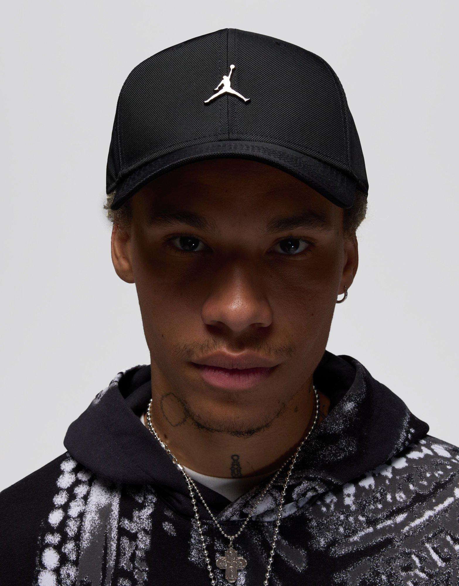 Upgrade your 'fits with this Cap from Jordan. In a Black colourway, this cap is made with soft but durable woven nylon for lasting wear. With a stitched panel construction, it has breathable eyelets through the crown and a pre-curved visor for a classic look. It has an adjustable back strap for a custom fit, and is finished with a metal Jumpman at the front. Style Code: HM5750-010