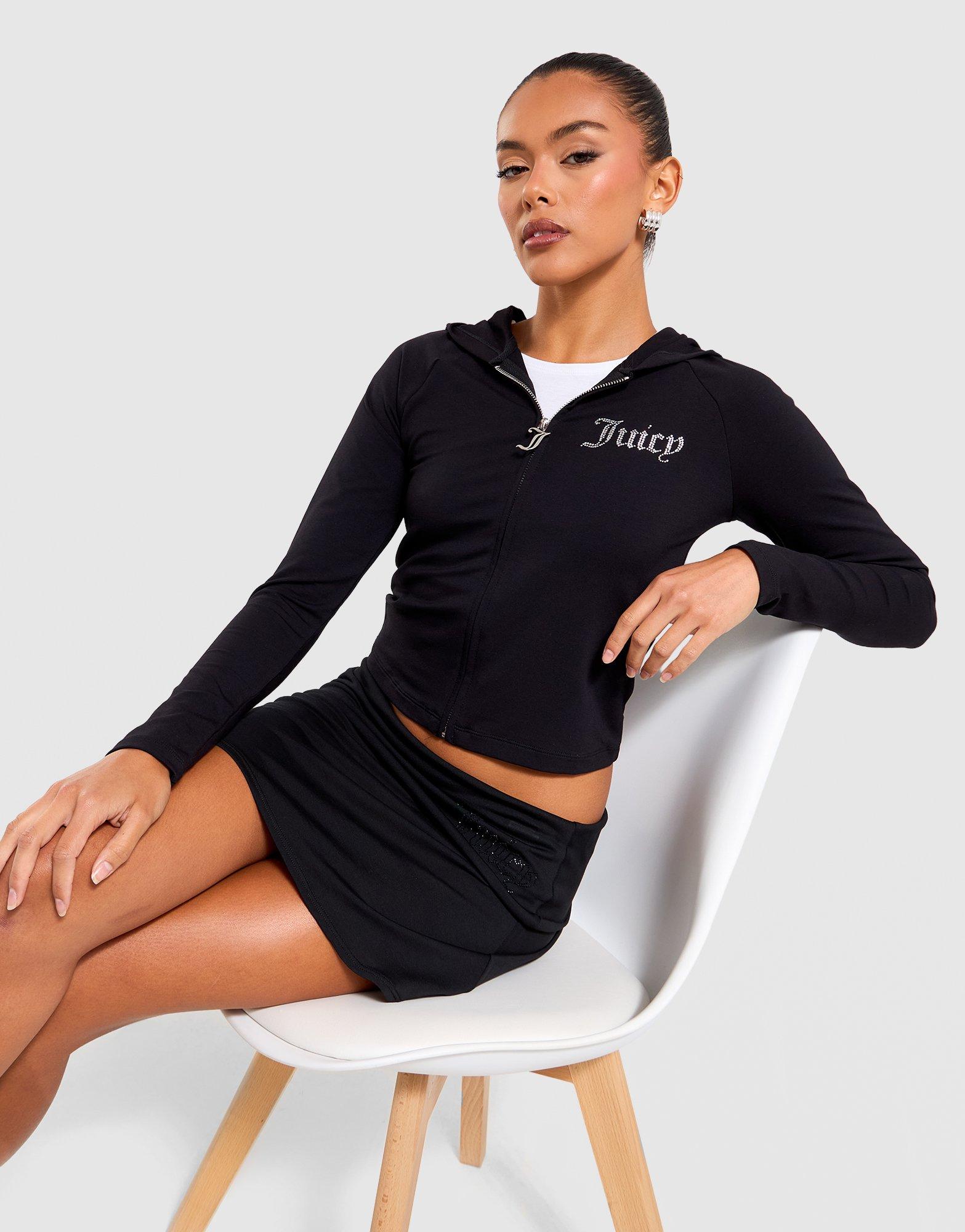 Add a luxe touch to your wardrobe with this women’s Juicy Couture Madi Full-Zip Velour Hoodie in black, exclusive to JD. Made from velour, it offers a standard fit with long sleeves and ribbed cuffs for comfort. The full-zip design allows easy layering, while the soft black colourway keeps it chic and versatile. Pair with matching track pants for a coordinated Juicy Couture look.