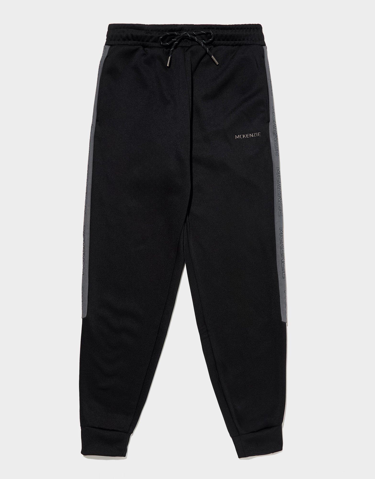 Stay sharp with these men's McKenzie Dakota Track Pants, exclusive to JD for a sleek, sport-inspired look. Designed with a standard fit, they deliver comfort and freedom of movement for active days and relaxed evenings. The black colourway with grey and tan tape detailing adds a branded edge that elevates classic track pant styling. Built with McKenzie's signature attention to detail, these pants bring contemporary streetwear vibes to your rotation. Perfect for pairing with hoodies or tees for a coordinated finish. Style Code: MCKTM17116007