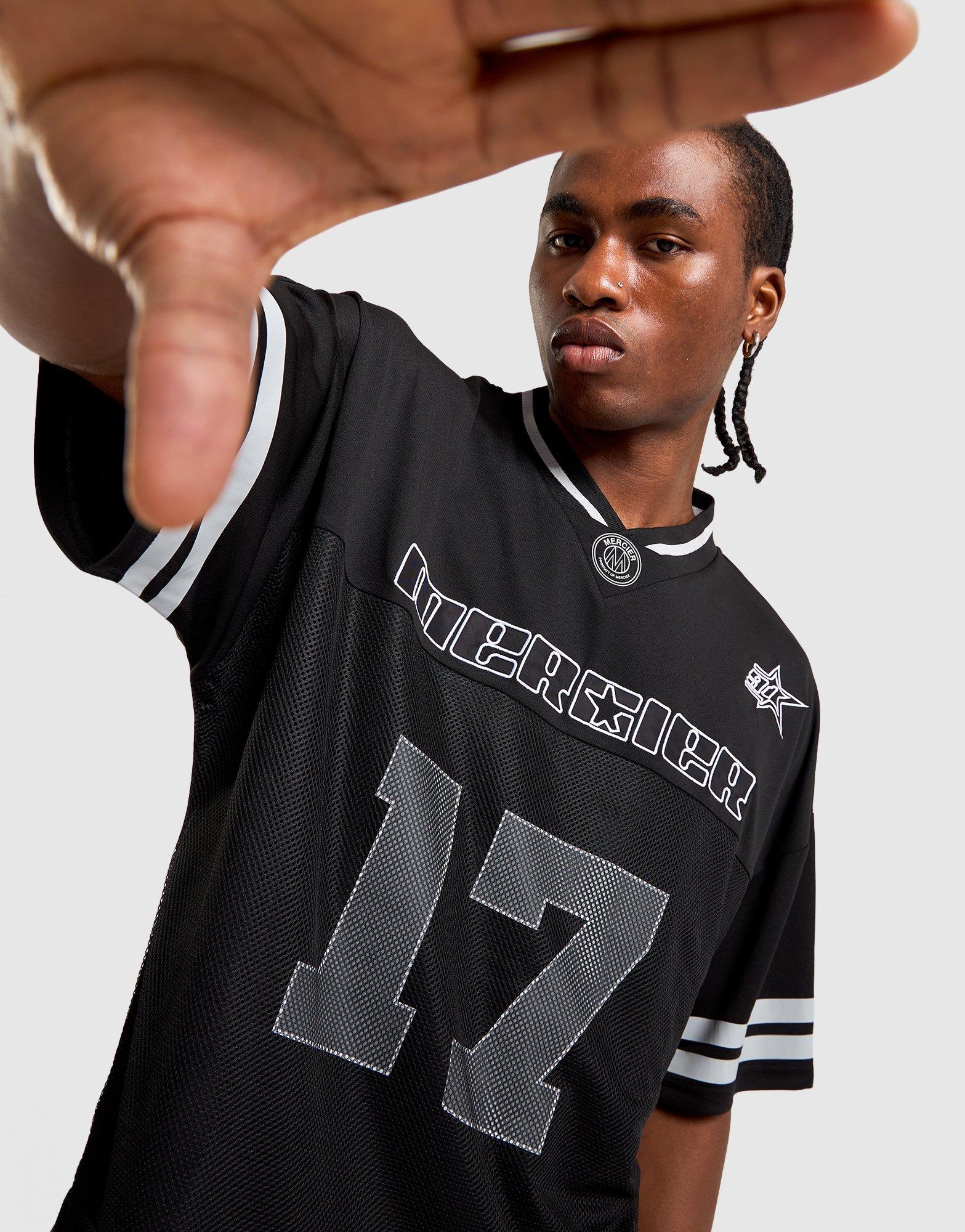 Bring athletic style to your rotation with this men's Mercier Jersey. Featuring a standard fit and jersey construction, it showcases high brand read colour-blocking in black with grey and white accents. The contemporary design makes it perfect for casual wear or layering. Built with Mercier quality and bold branding, this tee delivers street-ready appeal. Style Code: MERC1143BLK