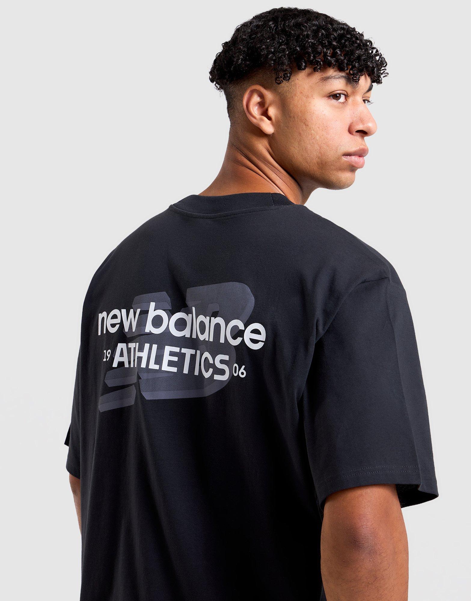 Make a statement with this men's New Balance Athletics T-Shirt, exclusive to JD. Featuring a standard fit and short sleeves, it showcases front and back logo placement in black with white accents. The bold branding brings contemporary New Balance style to casual wardrobes. Perfect for pairing with shorts or joggers, this tee delivers comfort with standout athletic design. Style Code: MT61T3J3_BK