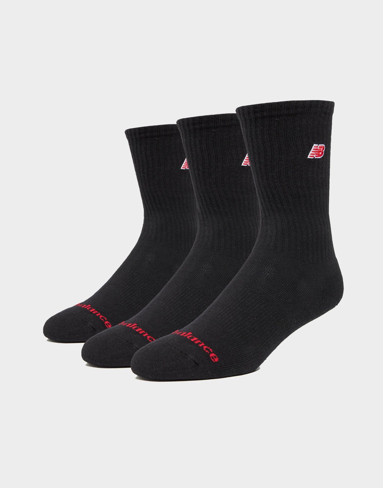 Treat ya' feet to this 3 pack of Crew Socks from New Balance. Coming in a Black colourway with contrasting NB logo to the ankle and across the toes, these socks are built with an ultra-soft and stretchy fabric, with a band around the arch for a supportive feel as well as a reinforced heel and toe for durable wear.