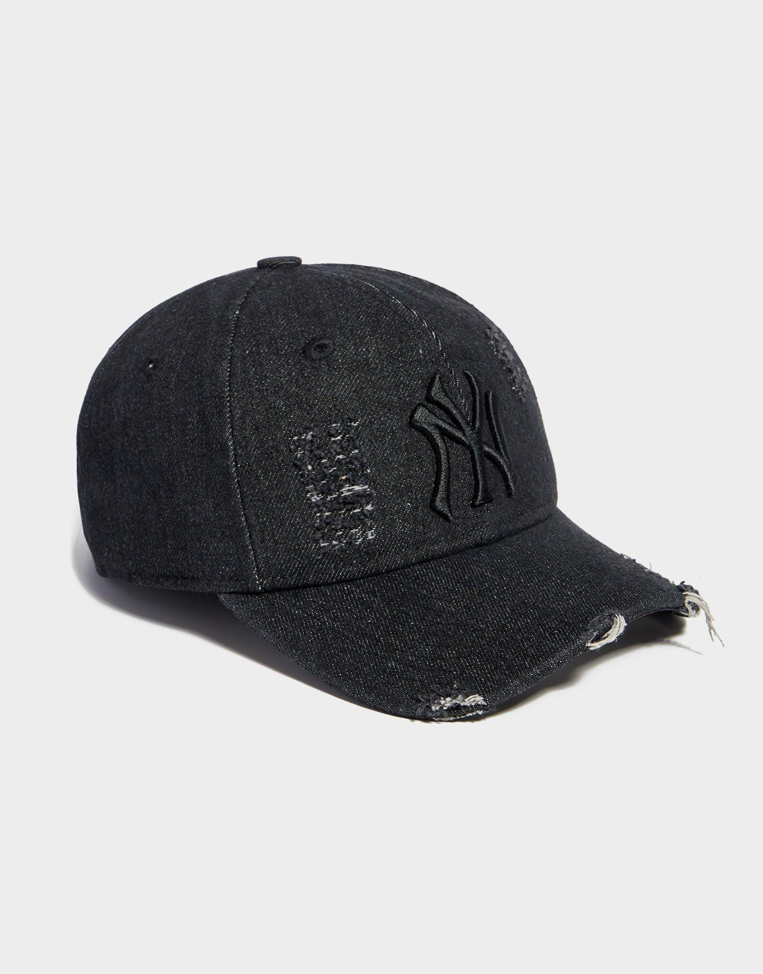 Rep the Yankees with this women's New Era 9TWENTY NY Yankees Denim Destroyed Cap, exclusive to JD. Featuring a standard fit and distressed denim construction, it showcases an all-black colourway with destroyed detailing for edgy streetwear style. The adjustable closure ensures a comfortable, customised fit. Perfect for adding vintage-inspired edge to casual fits, this cap combines New Era quality with distressed denim fashion. Style Code: 14958194