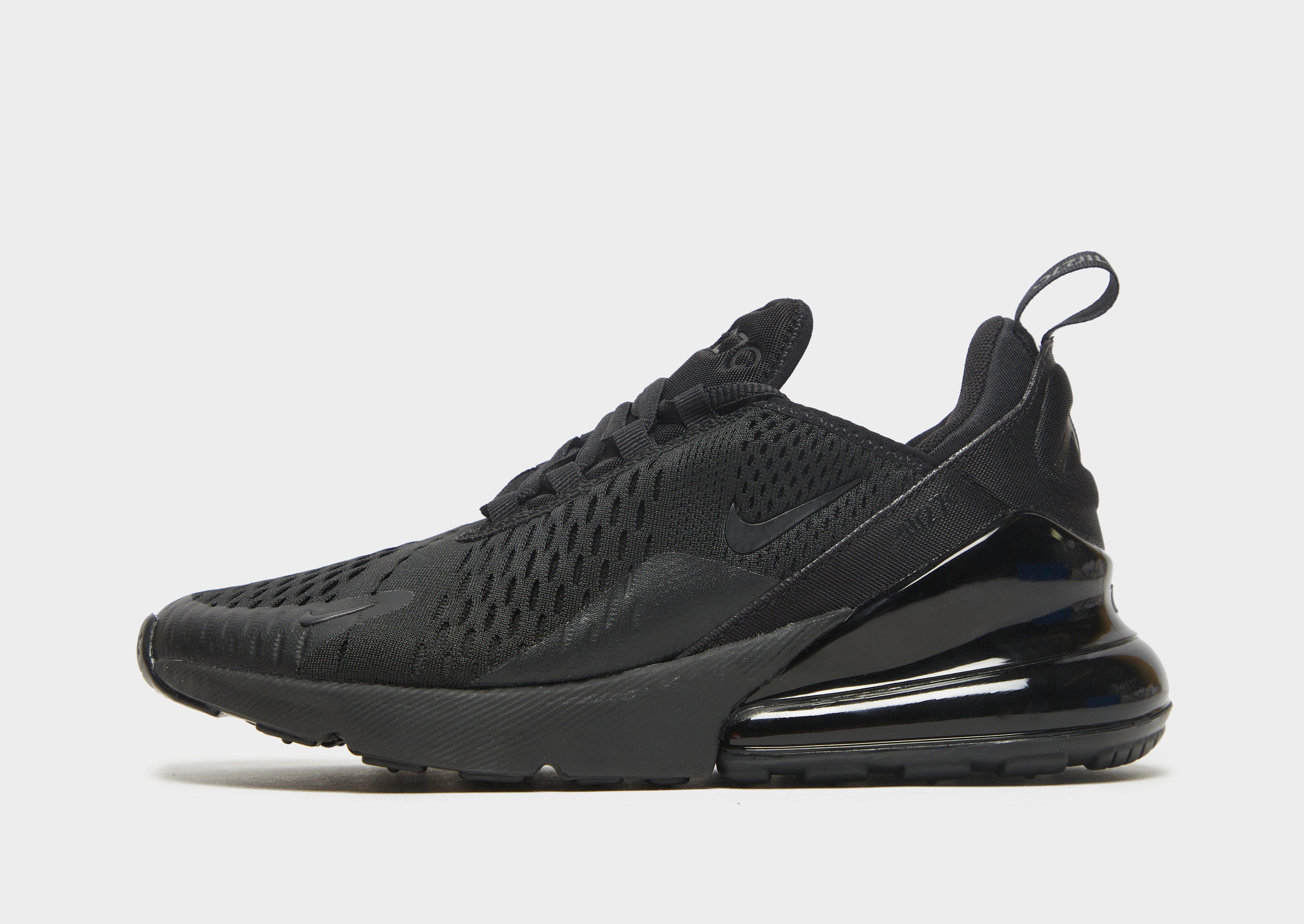 Taking the Swoosh into the future, these juniors' Air Max 270 trainers from Nike are equipped with the tallest heel bag to date. With a nod to older, nostalgic models, they take inspiration from the Air 180 and Air Max 93 - but are a brand new silhouette designed purely as a lifestyle sneak. These lightweight trainers are built with a breathable mesh and canvas upper, which comes in a stealthy, triple black colourway. Sat on a visible Max Air unit that measures 32mm, they'll give you next-level cushioned comfort, with 270 degrees of visible Air. Finished with the iconic Swoosh to the sidewalls and Air 270 branding to the tongue and heel overlay.