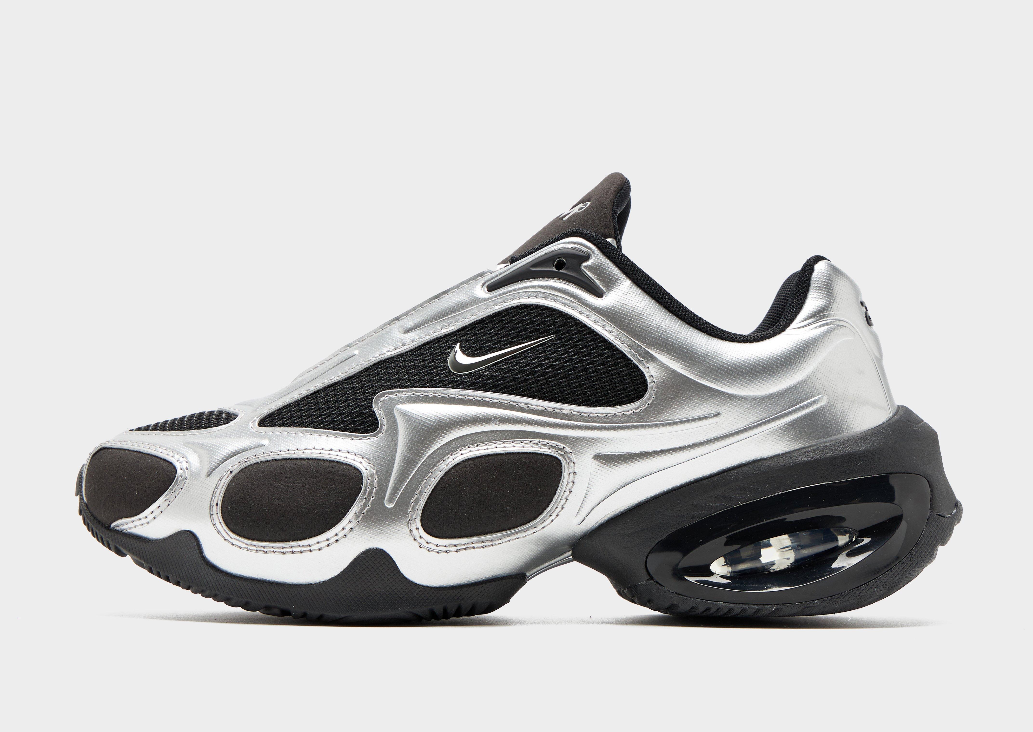 A bold entry has landed in the Air Max line-up. Grab your pair of these women's Air Max Muse trainers from Nike. In Black, the sleek, shiny and structured upper pairs synthetic leather and mesh panels. Underfoot, the foam midsole has an exaggerated arch, with Max Air cushioning delivering a responsive ride. Finished off with a solid rubber outsole and Metallic Silver Air Max branding. Style Code: FV1920-001