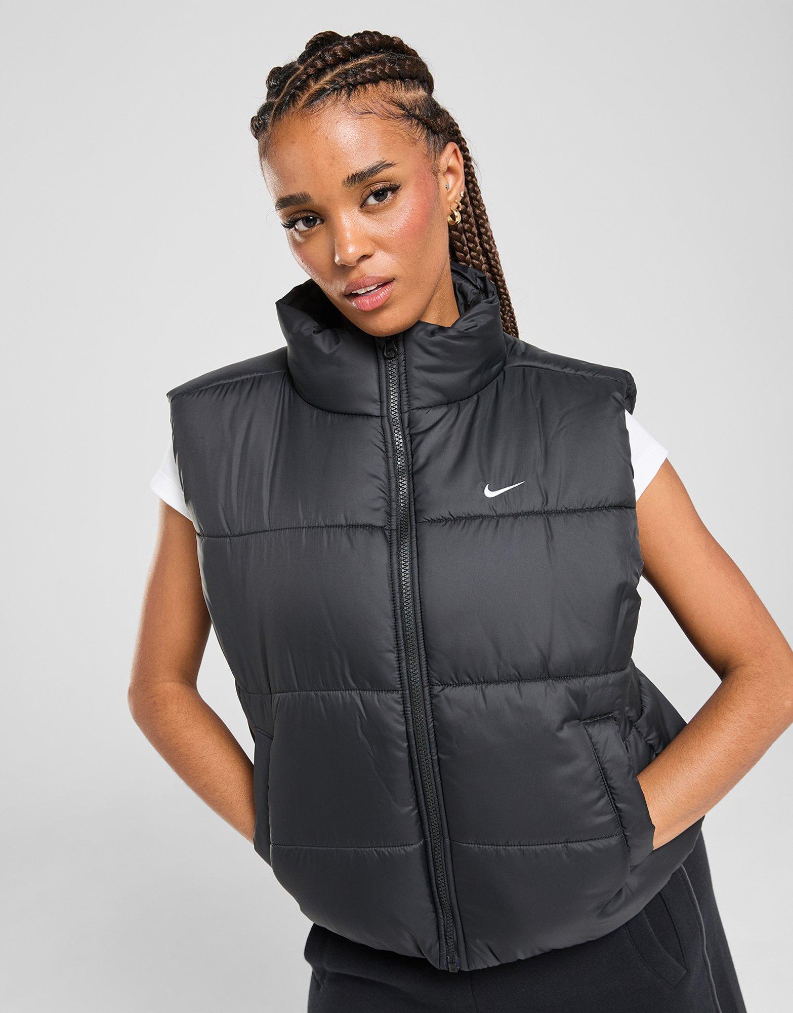 Keep the cold at bay with this women's Sportswear Synthetic Gilet from Nike. In a Black colourway, this full zip jacket is made from a water-repellent poly shell, with a synthetic insulation and Nike Therma-FIT tech managing your body's natural heat when the temp drops. It features a raised neckline and an elasticated hem for a secure feel, while snap-button pockets helps stash the essentials. Finished off with the Swoosh on the chest. Machine washable. | Our model is 5'7" and wears a size small.