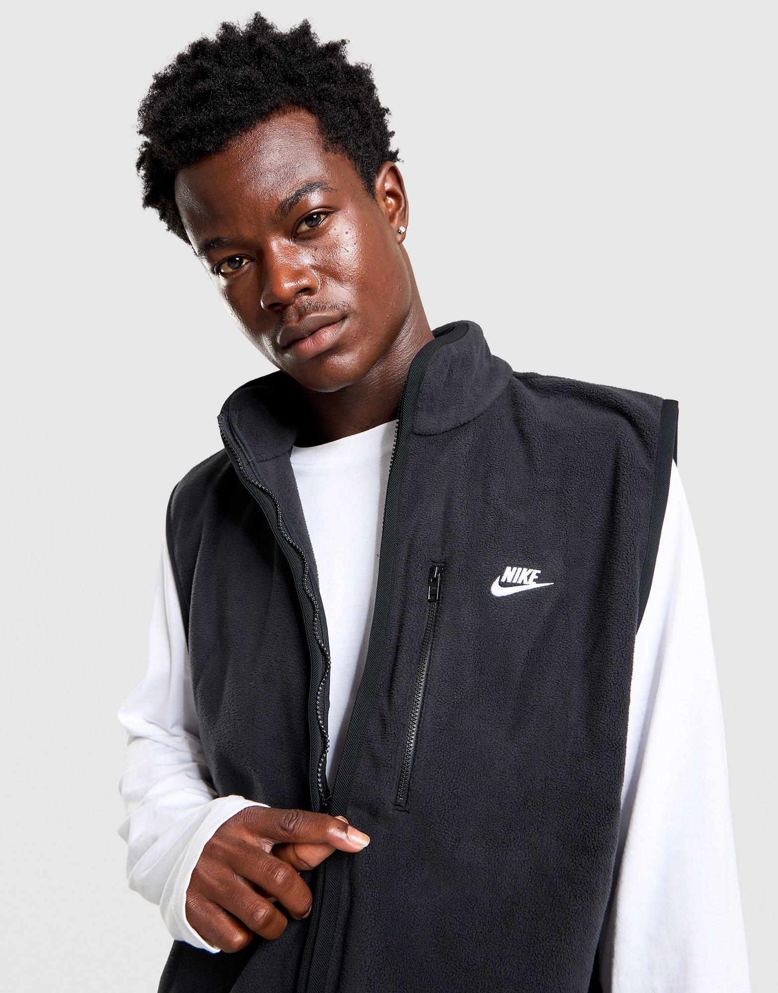 Layer smart with this men's Nike Polar Fleece Vest. Featuring a standard fit and plush polar fleece construction, it delivers warmth in all-black styling. The sleeveless design allows freedom of movement while keeping your core warm. Perfect for layering over hoodies or wearing solo, this vest combines Nike quality with cozy cold-weather functionality.
