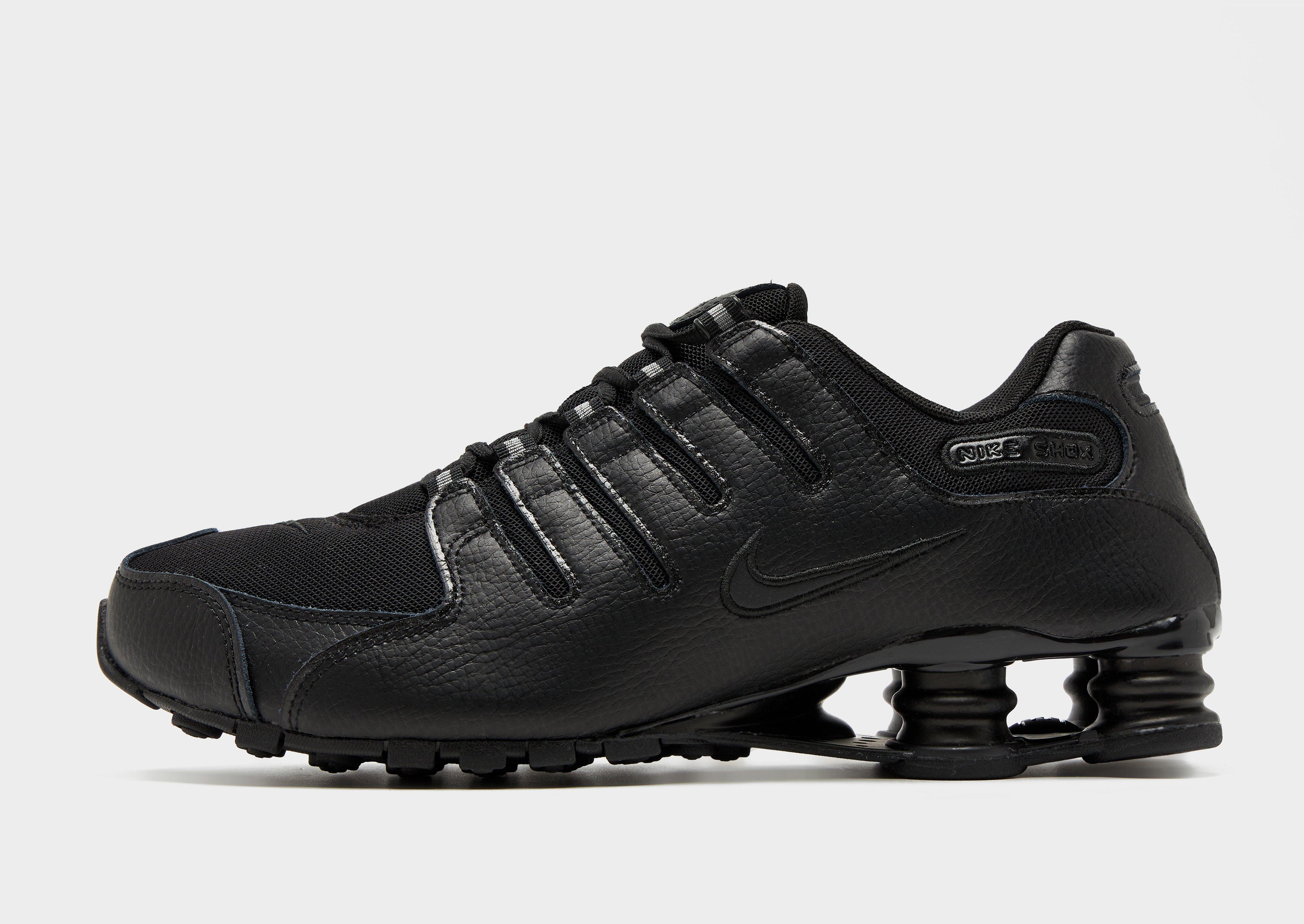 The all-black Nike Shox NZ is the kind of men's retro running shoe that doesn't need to shout to get noticed. Dressed in a clean Black on Black colourway, this recrafted version of the early 2000s icon pairs a synthetic leather and textile upper with iconic Nike Shox columns underfoot for a performance-inspired look that feels right at home on today's streets.