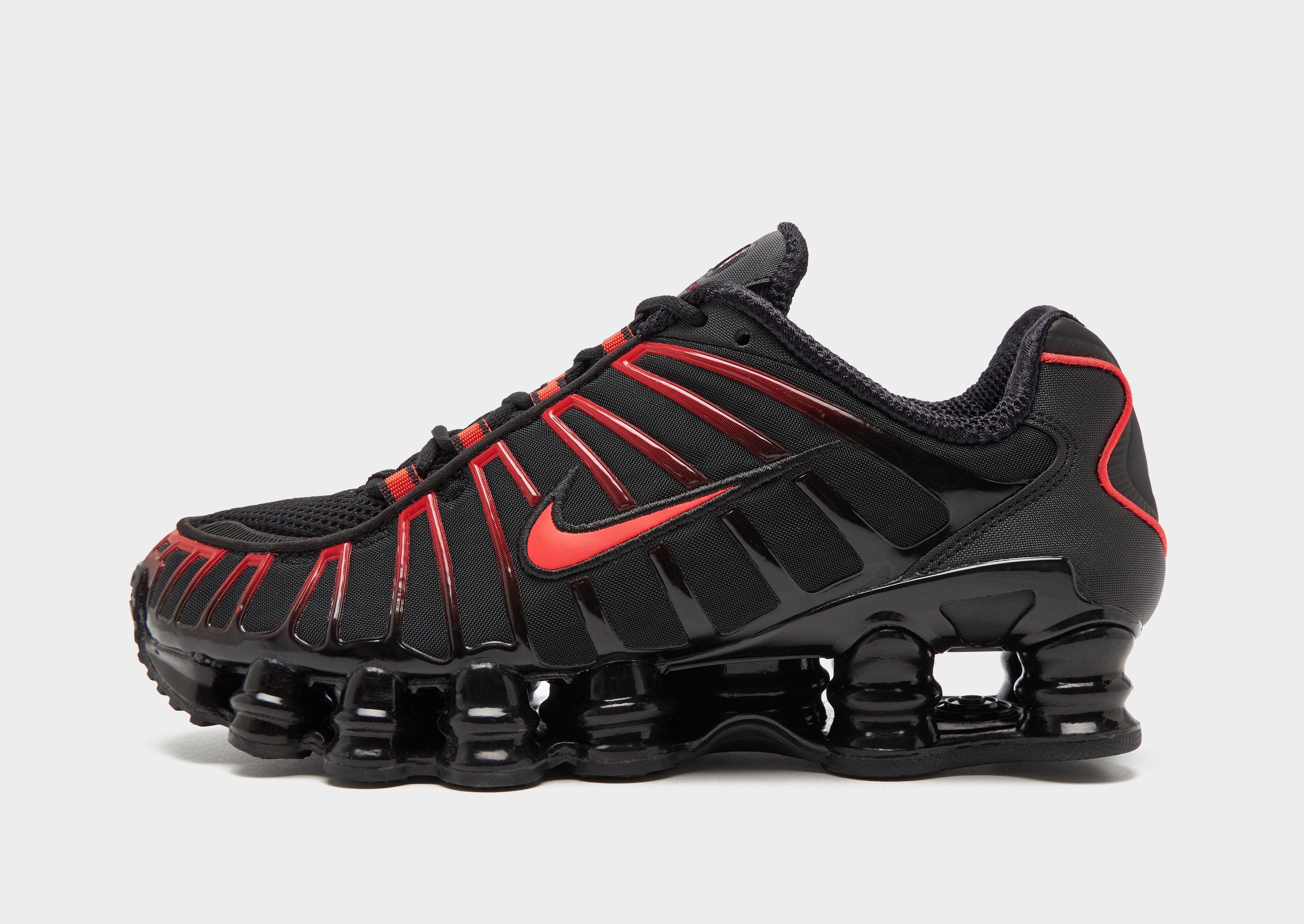Retro but futuristic, these junior's Shox TL sneakers from Nike bring back the 2003 icon in its OG form. In a Black colourway with Red details, these statement shoes are built with a breathable mesh upper that features glossy TPU overlays and a tonal lace up fastening for a locked-in fit. Nike's iconic Shox tech sits underfoot, with a full-length midsole of springy Shox columns for a super comfy feel. With a grippy rubber sole, these trainers are finished with Shox branding to the tongue and the signature Swoosh logo embroidered to the sidewalls. Style Code: IO4645-004
