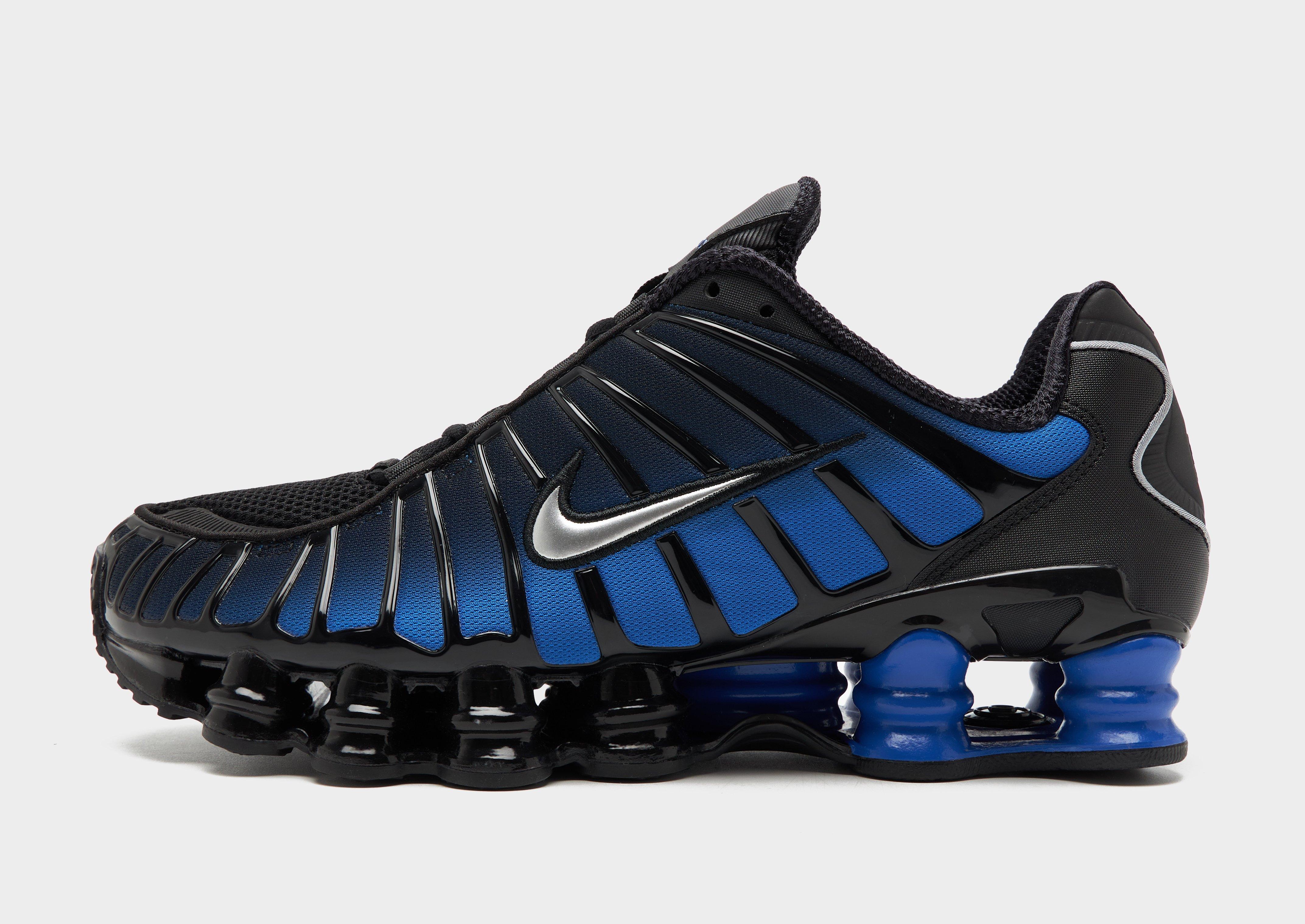 Retro but futuristic, these men's Shox TL sneakers from Nike bring back the 2003 icon in its OG form. In a Black colourway with Royal Blue details, these JD-exclusive statement shoes are built with a breathable mesh upper that features glossy TPU overlays and a tonal lace up fastening for a locked-in fit. Nike's iconic Shox tech sits underfoot, with a full-length midsole of springy Shox columns for a super comfy feel. With a grippy rubber sole, these trainers are finished with Shox branding to the tongue and the signature Swoosh logo embroidered to the sidewalls. Style Code: IO1905-480