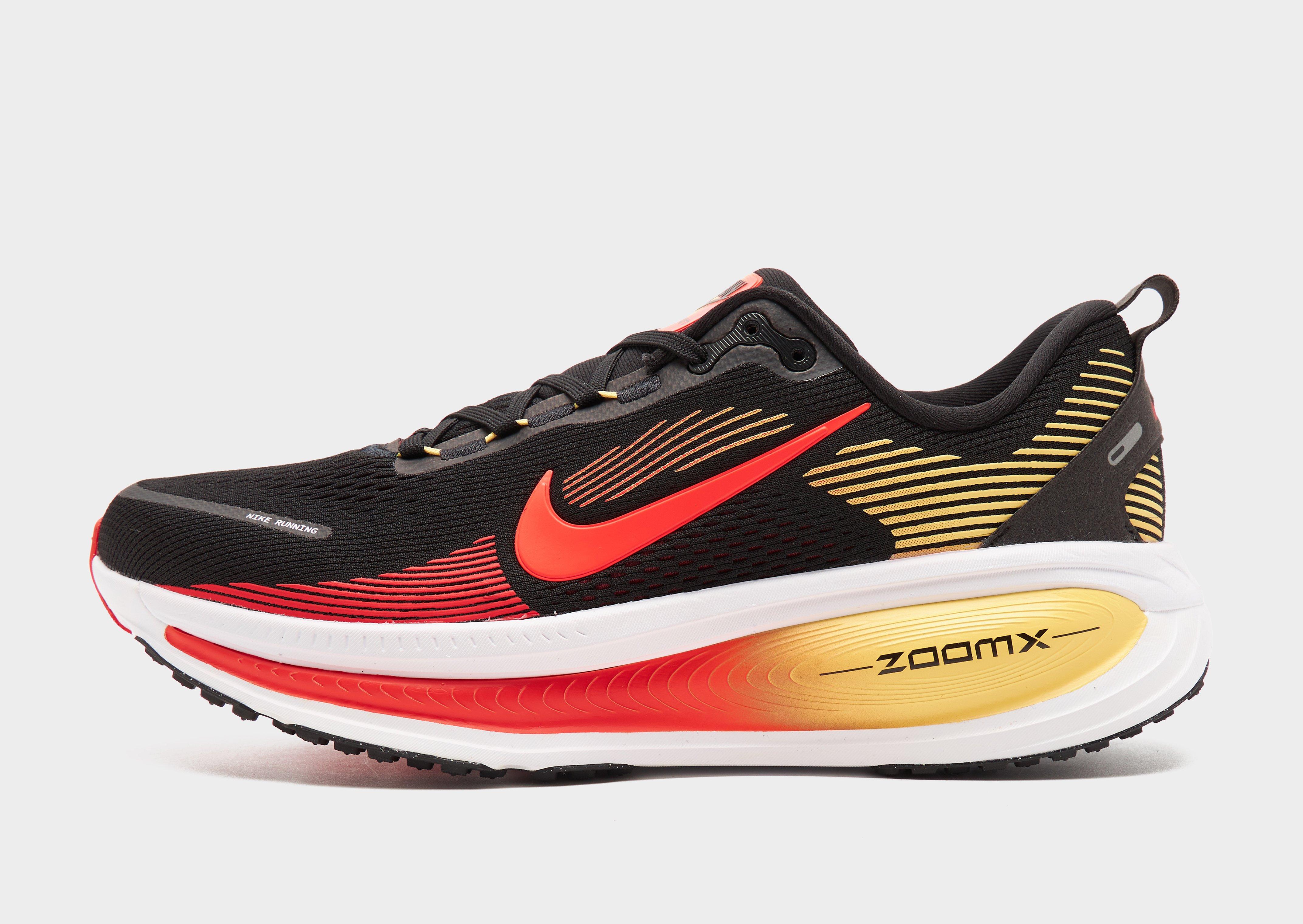 Move fast and with purpose in these men's Vomero 18 running shoes from Nike. In a Black colourway with Red details, these runners are cut from breathable mesh with durable synthetic overlays. They feature a lace fastening to lock you in, with a padded collar for support and heel-pull for easy access. Underfoot, they sit on a ReactX foam midsole that's stacked with extra ZoomX cushioning for an ultra-smooth ride, with a grippy rubber outsole for firm traction. Finished up with classic Swoosh branding. Style Code: HM6803-016