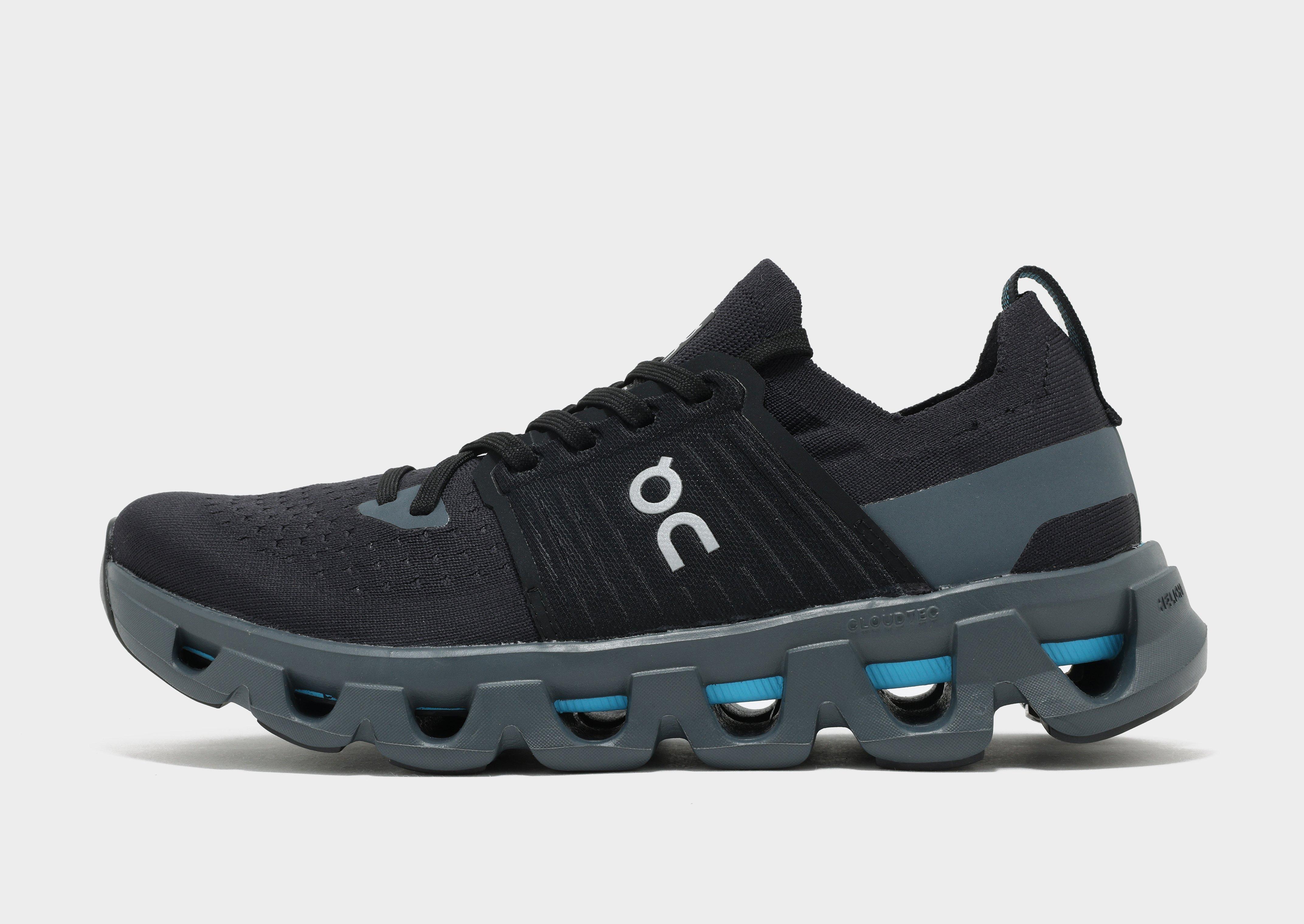 When it's time to hit harder ground, breeze through the city in total comfort with these men's Cloudswift 4 runners from On Running. Landing in a Black colourway with Grey details, these JD-exclusive urban-built runners have a sock-like upper with breathable mesh zones and 3D heel padding for support. The re-engineered sole combines CloudTec and dual-density Helion superfoam for ultra-soft landings, while the Speedboard injects energy. Finished up with a grippy rubber outsole and signature On Running branding. Style Code: 3MF31053404