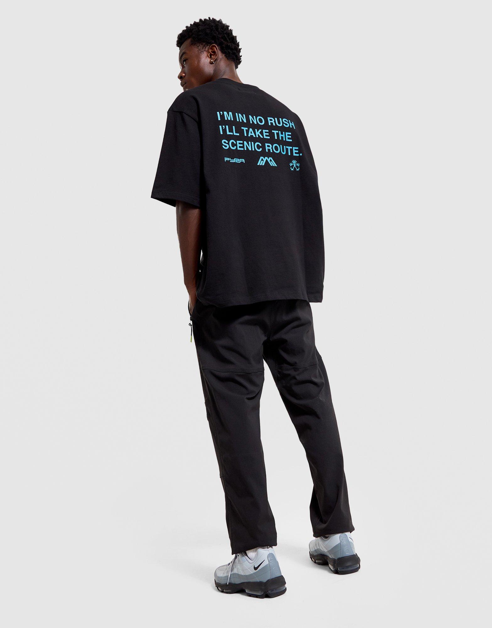 Make a statement in this men's Pyra Scenic Oversized T-Shirt, designed for contemporary streetwear style. Cut to an oversized fit with short sleeves, it delivers a relaxed, on-trend silhouette that's perfect for layering or wearing solo. The black base with blue accents adds a bold visual edge, while the soft fabric ensures all-day comfort. Ideal for casual days or urban exploring, this tee brings modern style to your everyday rotation.