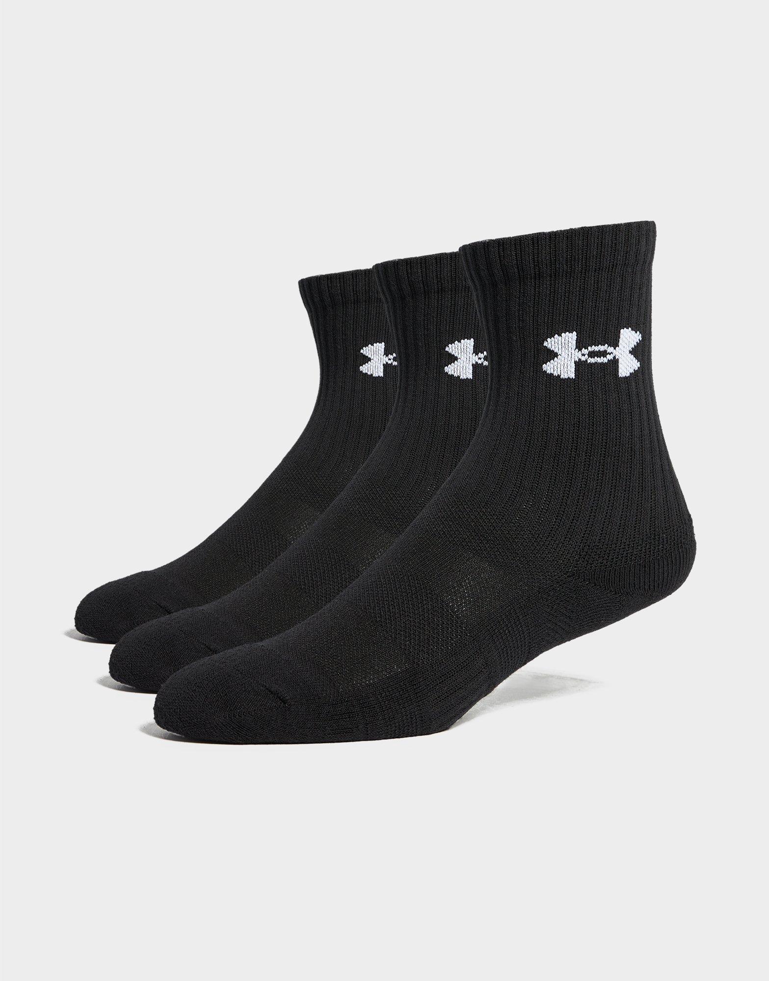 Complete your training kit with this Under Armour Performance Crew Socks 3-Pack, designed for active lifestyles. Standard fit ensures comfortable wear during workouts, runs, or everyday activities. Black colourway with white accents offers timeless versatility across your sneaker collection. Built with performance fabric technology for moisture management and lasting comfort. Style Code: 6009685-008