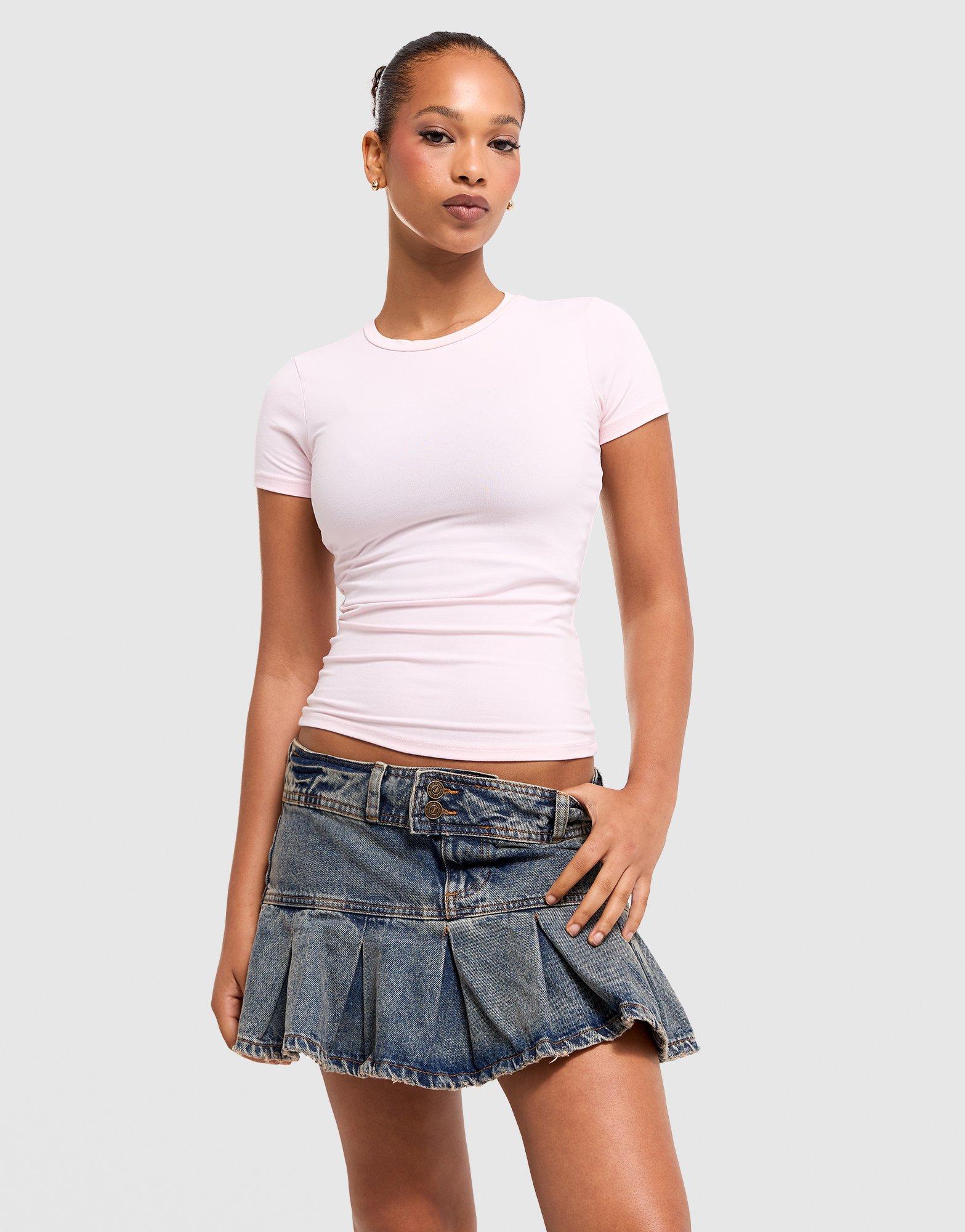 Step out in standout style with this women's Denim Mini Skirt from Juicy Couture. Keep it premium and rep a retro vibe with Juicy Couture, an icon since the ‘90s known for its signature velour and unmissable diamante branding.