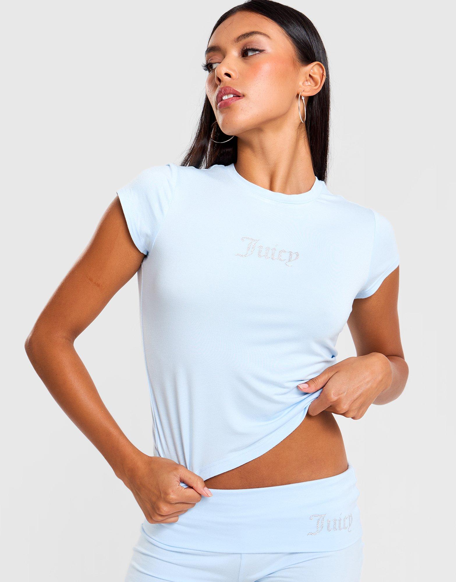 Elevate your everyday essentials with this Juicy Couture women's jersey tee in a pale blue colourway. Crafted from soft jersey fabric with a flattering slim fit, this short-sleeved tee features a classic ribbed crewneck for timeless style. Perfect for layering or wearing solo, it brings that signature Juicy Couture aesthetic to your casual wardrobe with effortless comfort. This JD exclusive piece is your go-to for building iconic Y2K-inspired fits.