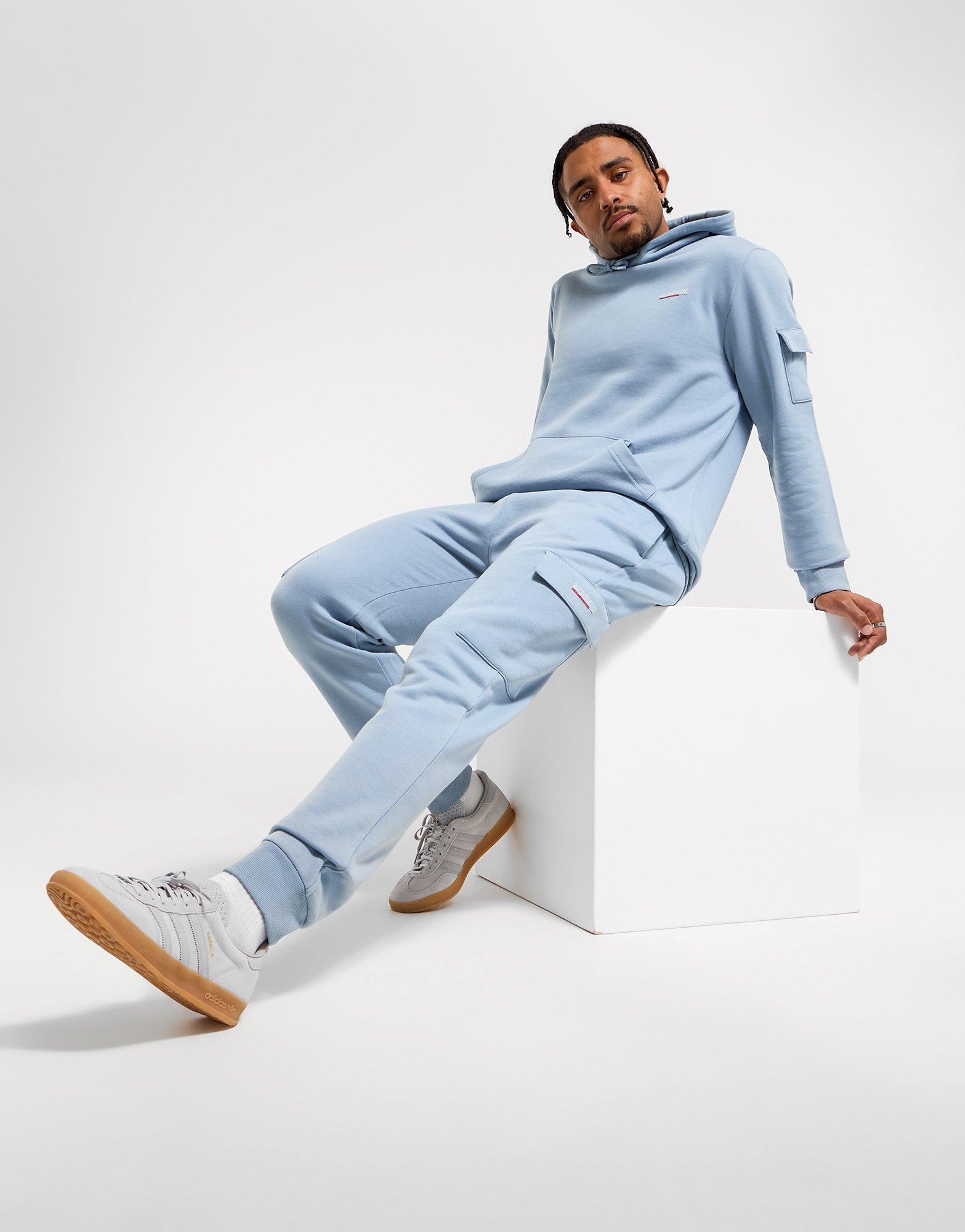Upgrade your look with men's Hooded Tracksuit from McKenzie. Landing in a Light Blue colourway, this regular-fit suit is cut from a soft blended fabric for all-day comfort. It features an overhead hood, ribbed trims to hold the shape, and a pouch pocket for storage. The matching joggers have an elastic waistband to keep you supported, cuffed ankles for an elevated fit, and side pockets for quick access. Signed off with McKenzie branding to the chest and leg.