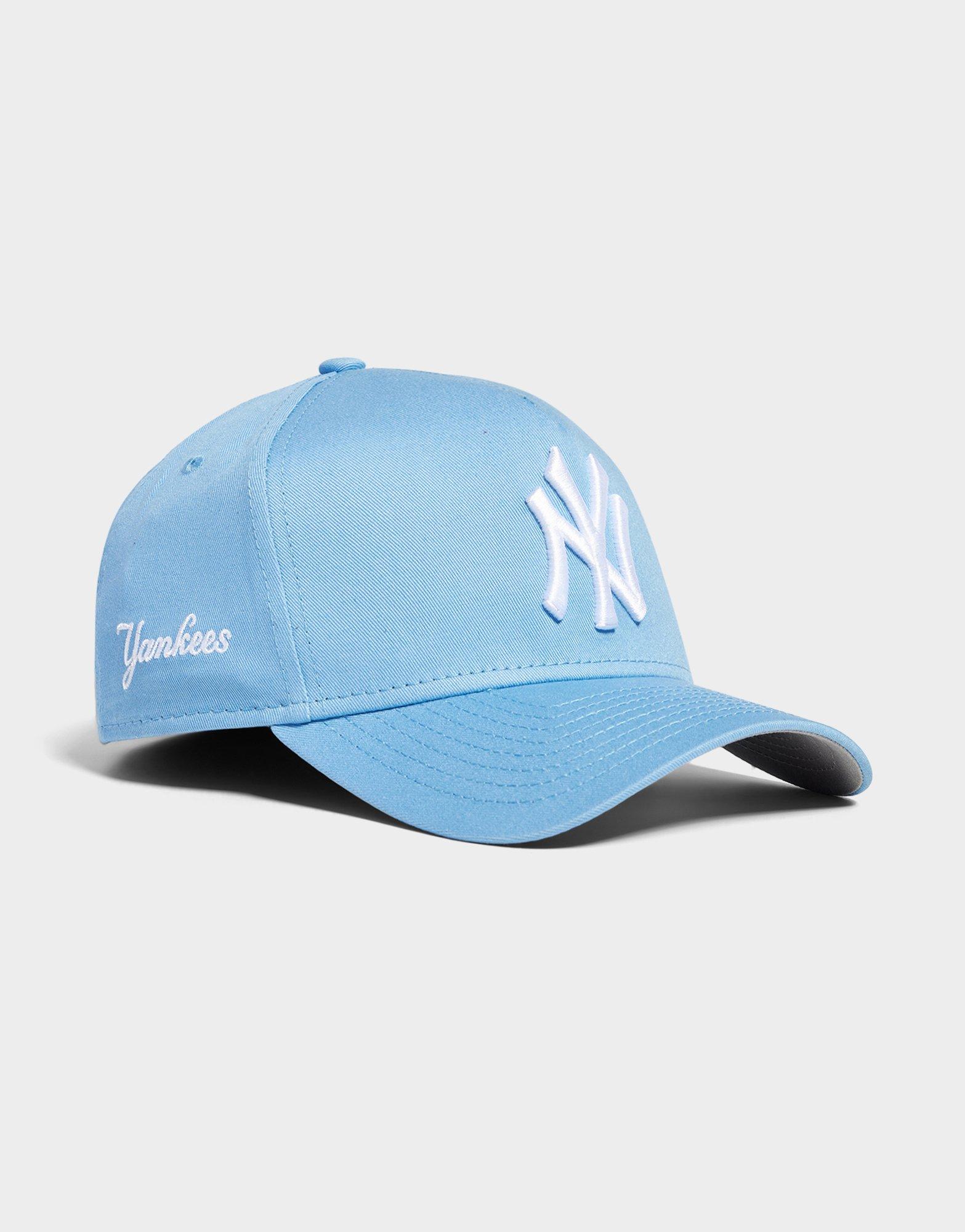Upgrade your 'fits with this MLB New York Yankees 9FORTY Cap from New Era. In a Light Blue colourway, this cap is made with soft but durable woven cotton for lasting wear. With a stitched panel construction, it has breathable eyelets through the crown and a pre-curved visor for a classic look. It has an adjustable back strap for a custom fit, and is finished with a White Yankees logo at the front. Signed off with New Era branding. Style Code: 60747677