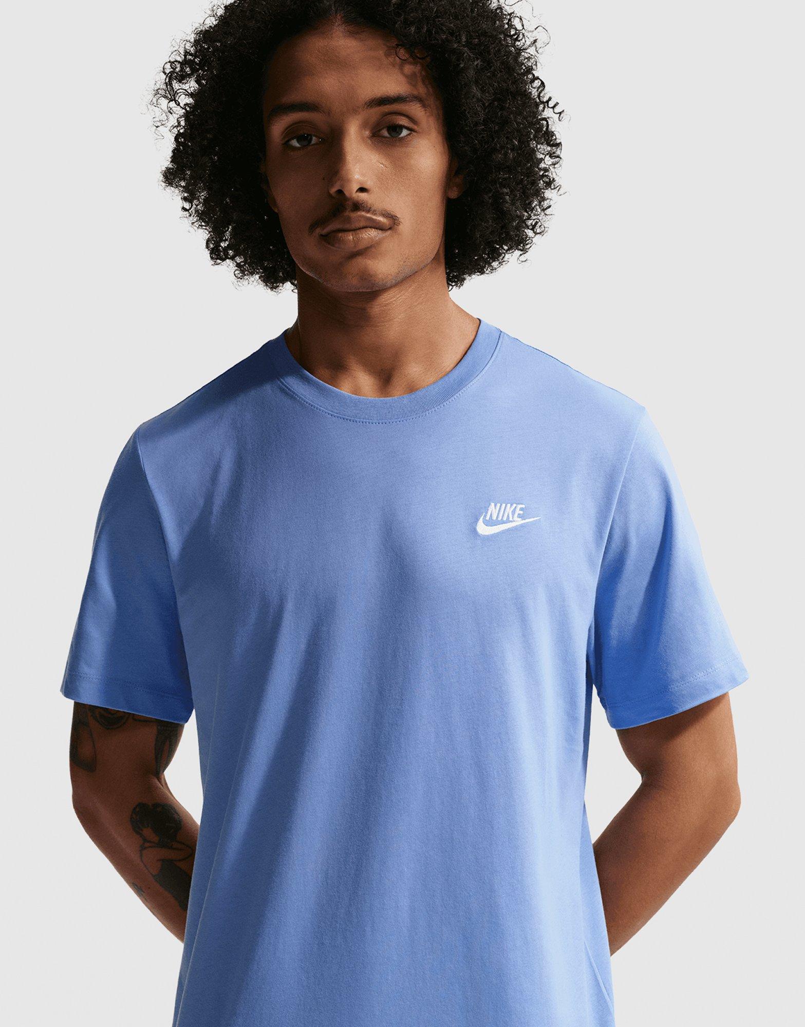 Throw it back with this men's Nike Club T-Shirt. Featuring a standard fit and short sleeves, it showcases a blue colourway with white accents for retro Nike styling. The classic design celebrates throwback athletic aesthetics with modern comfort and quality. Perfect for pairing with joggers or shorts, this tee brings nostalgic sportswear vibes to everyday rotation. Style Code: AR4997-494