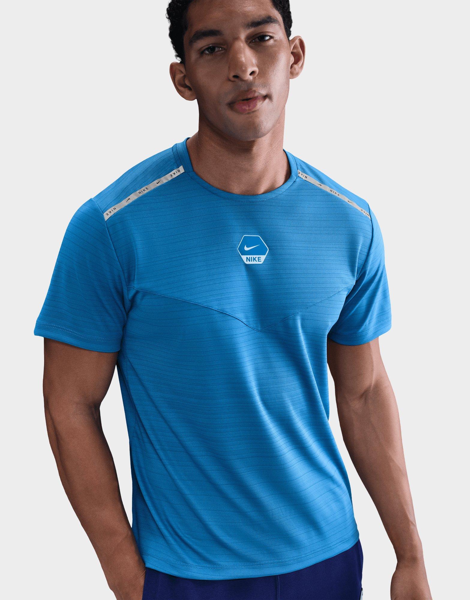 Elevate your everyday rotation with this men's Nike Training Dri-FIT T-Shirt, exclusive to JD for a statement sport-luxe look. Designed with a standard fit and short sleeves, it delivers breathable comfort that works from training sessions to street style. The light-blue colourway brings a fresh seasonal edge, while tape detailing adds a premium finish that captures modern Nike DNA. Perfect for layering or wearing solo, this tee brings effortless style to your active wardrobe.