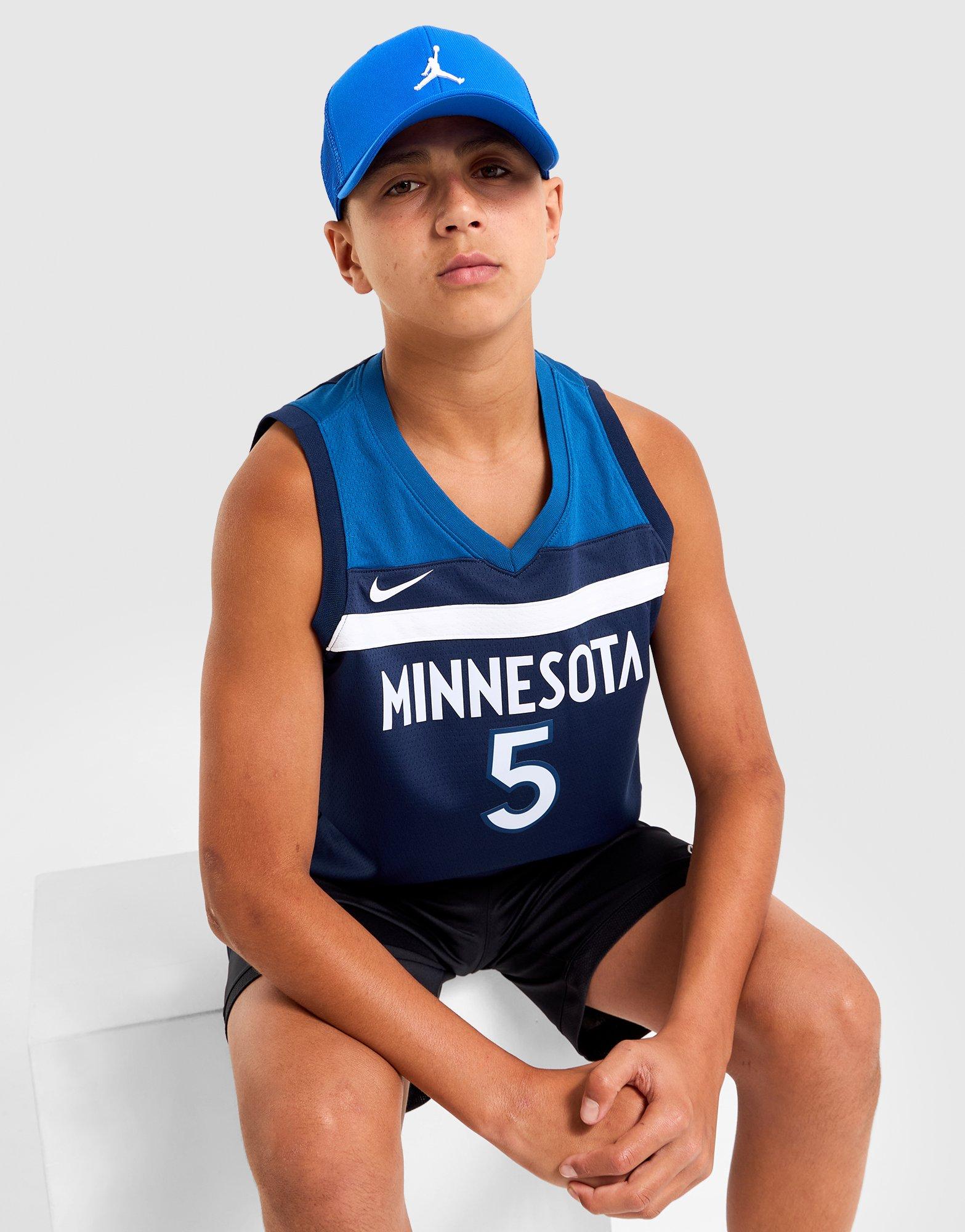 This jersey is inspired by what professional players wear on the court, featuring Minnesota Timberwolves graphics and classic trims.