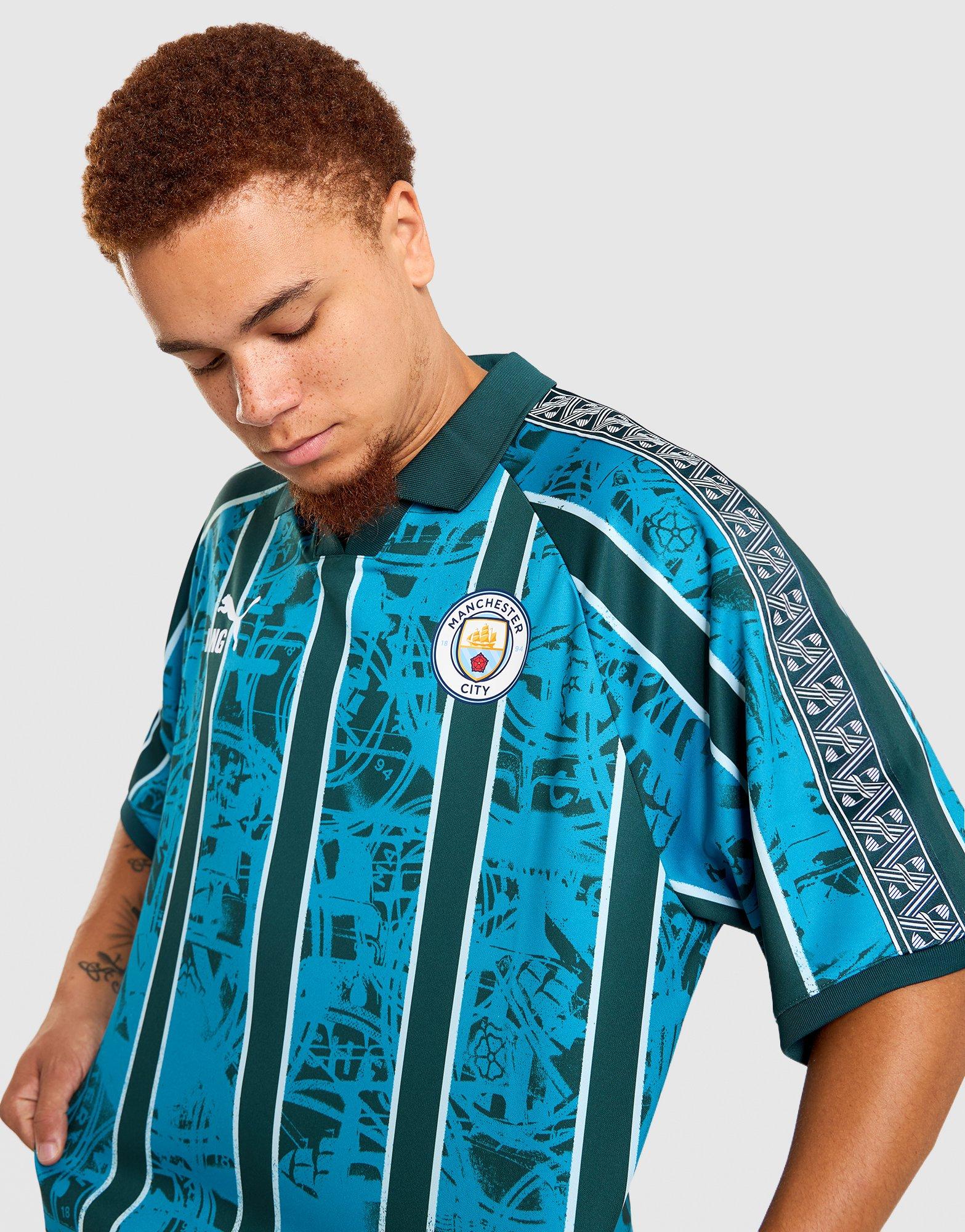 Club pride never goes out of style - the Men's Puma Manchester City KING Retro Jersey in tropical blue and deep navy is built for fans who want to wear their history. A bold front graphic and official team branding bring classic Man City heritage into a modern, relaxed-fit silhouette puma, making it just as wearable on match day as it is out in the city. Made from 100% recycled polyester puma, this men's retro football jersey delivers soft comfort with a sustainability-conscious construction. A must-have replica piece for Manchester City supporters who take their kit seriously. Style Code: 785878