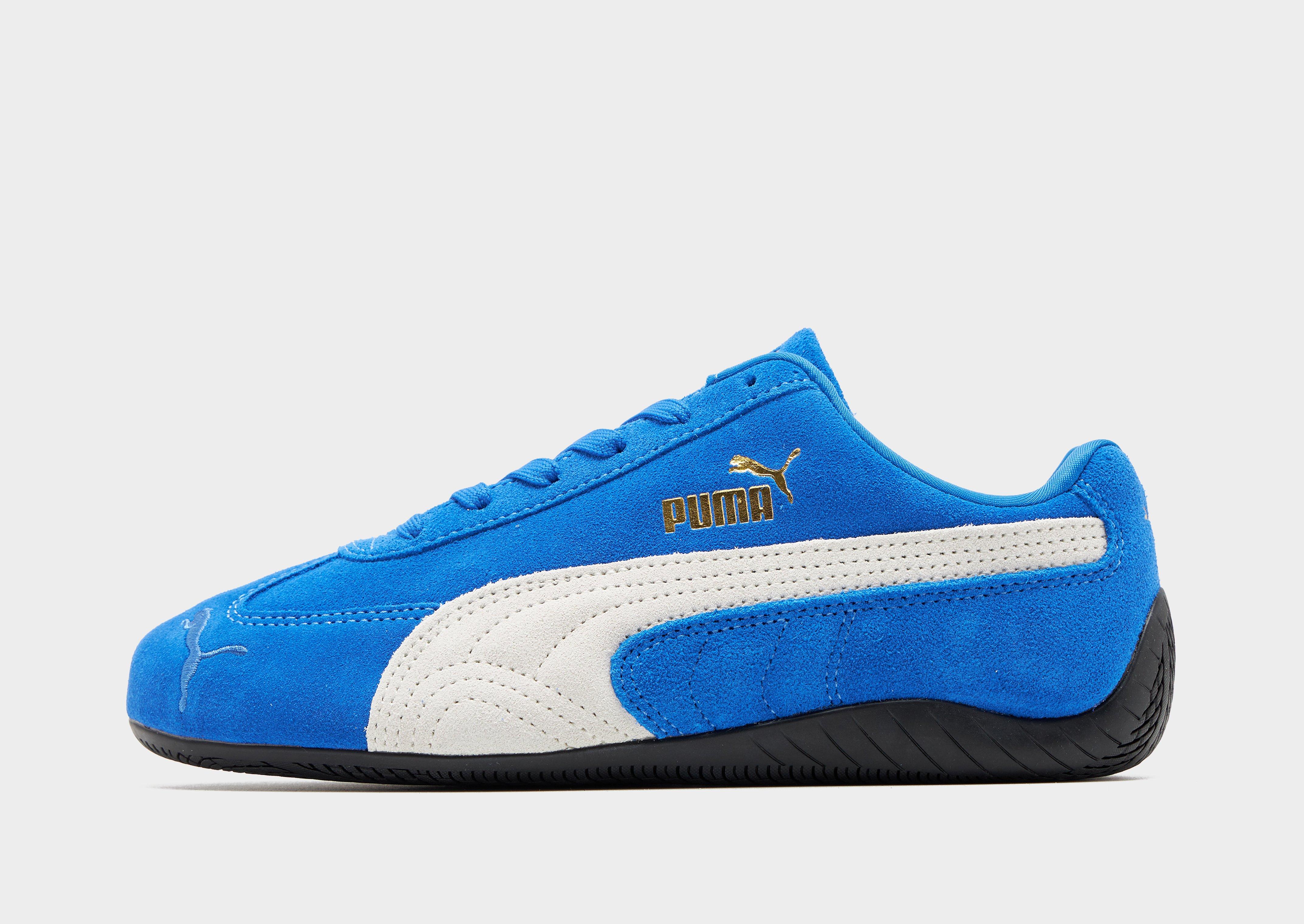 Race culture meets the streets with these juniors' Speedcat OG trainers from PUMA. In a Mountain Blue and Frosted Ivory colourway, these streamlined sneakers have a cow suede leather upper and a rounded toe. They're sat above a low-profile IMEVA midsole for lightweight cushioning, while the tyre-like tread delivers max grip at the rubber outsole. Finished with the Formstrip and signatue PUMA Cat.