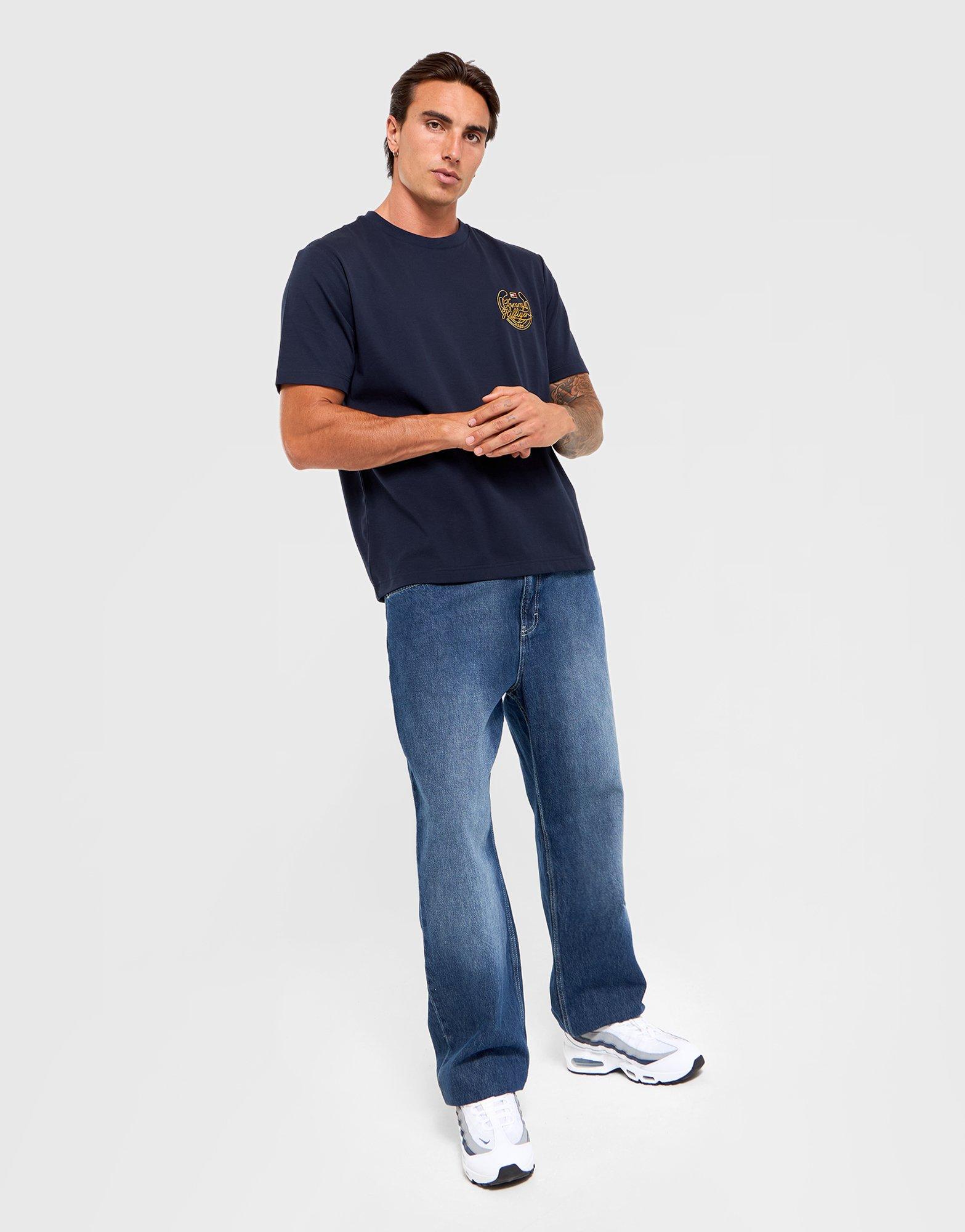 This men’s Tommy Hilfiger T‑Shirt in navy gold brings seasonal style to casual wear. Cotton-blend fabric ensures a standard fit for comfort. Perfect for pairing with jeans or shorts during festive celebrations.
