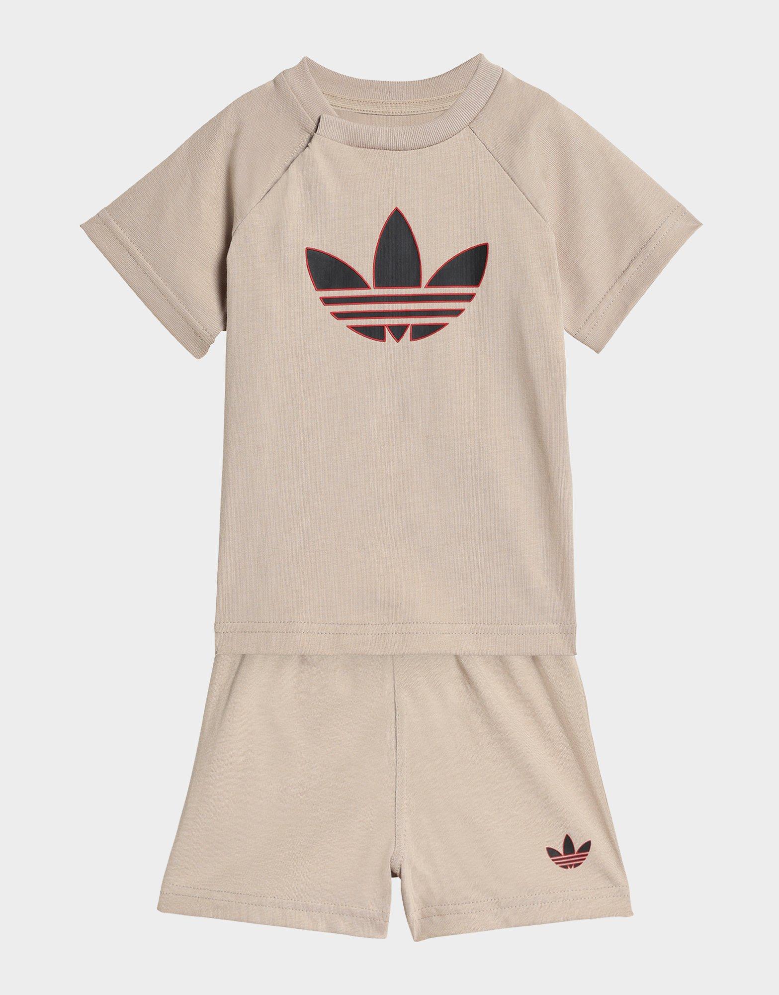 The infant adidas Trefoil T-Shirt Set in Tan with Black and Red is the co-ordinated two-piece for little ones who deserve their own moment in the adidas Originals family. The set pairs a short-sleeve T-Shirt with coordinating bottoms, both finished in a warm earthy Tan colourway with Black and Red Trefoil branding that ties the look directly back to adidas Originals' most iconic heritage identity. Made from soft, comfortable fabric built for the demands of active infants, it is the kind of set that works from home to playgroup without missing a step. Style Code: KD1039