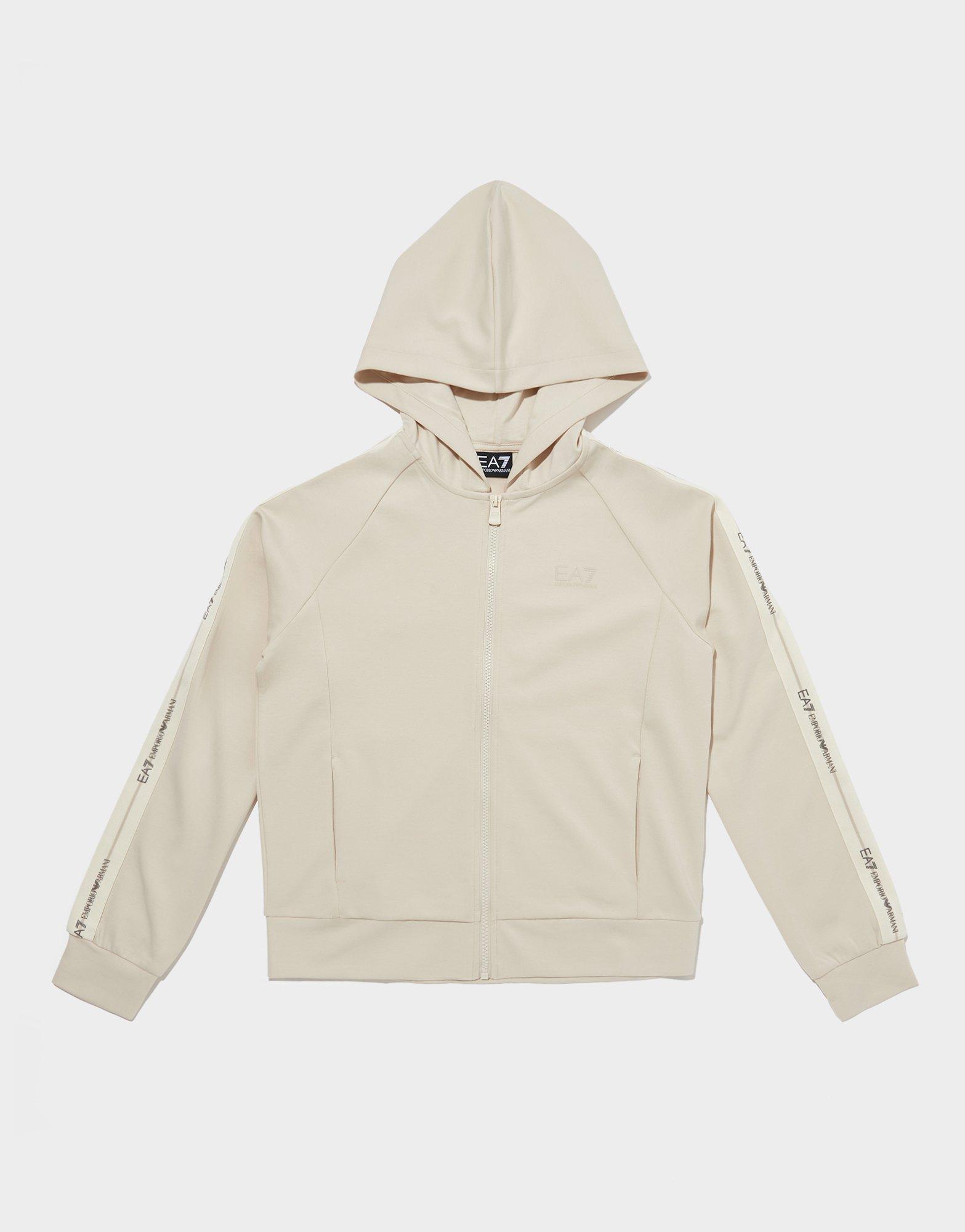Refresh your layers with this women’s EA7 full-zip hoodie, blending sporty style with everyday comfort. Cut in a standard fit, it features long sleeves with ribbed cuffs and a sleek zip-through design. The tan colourway is elevated with signature logo tape detailing for a premium finish. Perfect for athleisure looks with a designer edge.