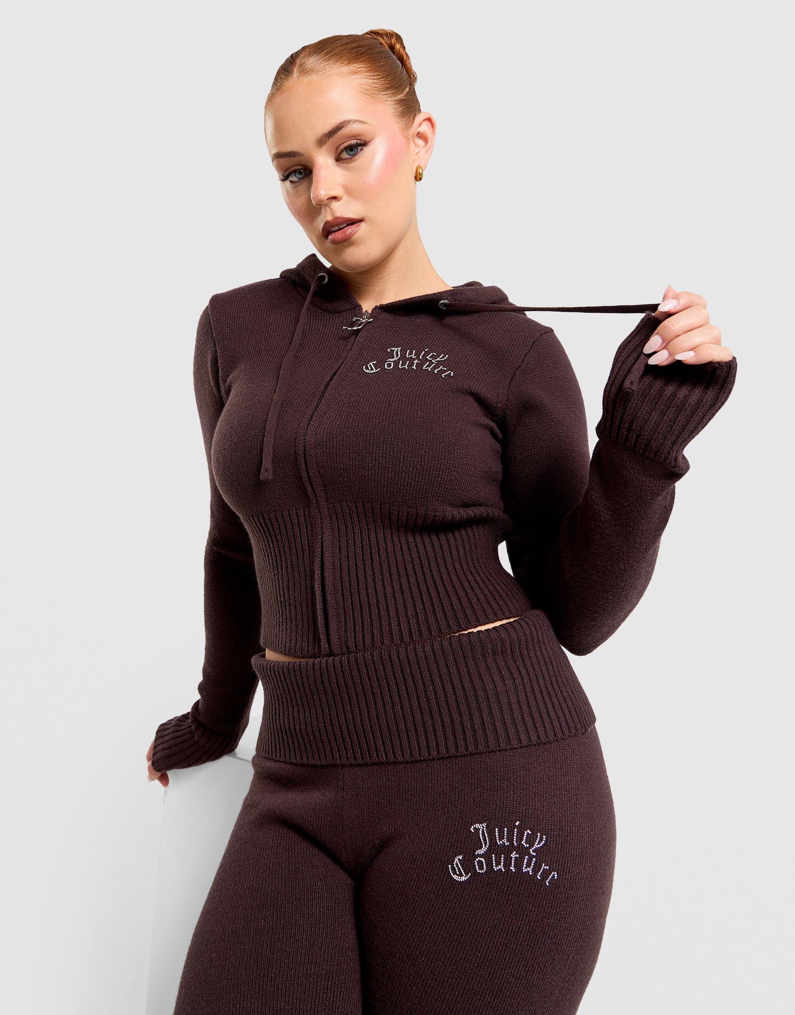 Exclusively at JD, the women's Juicy Couture Corset Knit Full-Zip Hoodie in Brown with Silver is the fashion-forward piece for women who want their leisurewear to feel luxurious. The corset-inspired knit construction gives the hoodie a figure-enhancing, fitted silhouette that references the brand's Y2K heritage while feeling genuinely fresh for the current moment, while the full-zip design makes it versatile enough to wear open or closed. The Brown with Silver metallic detail combination is rich and considered, a step above the typical women's loungewear hoodie. Style Code: JCJDW5481122