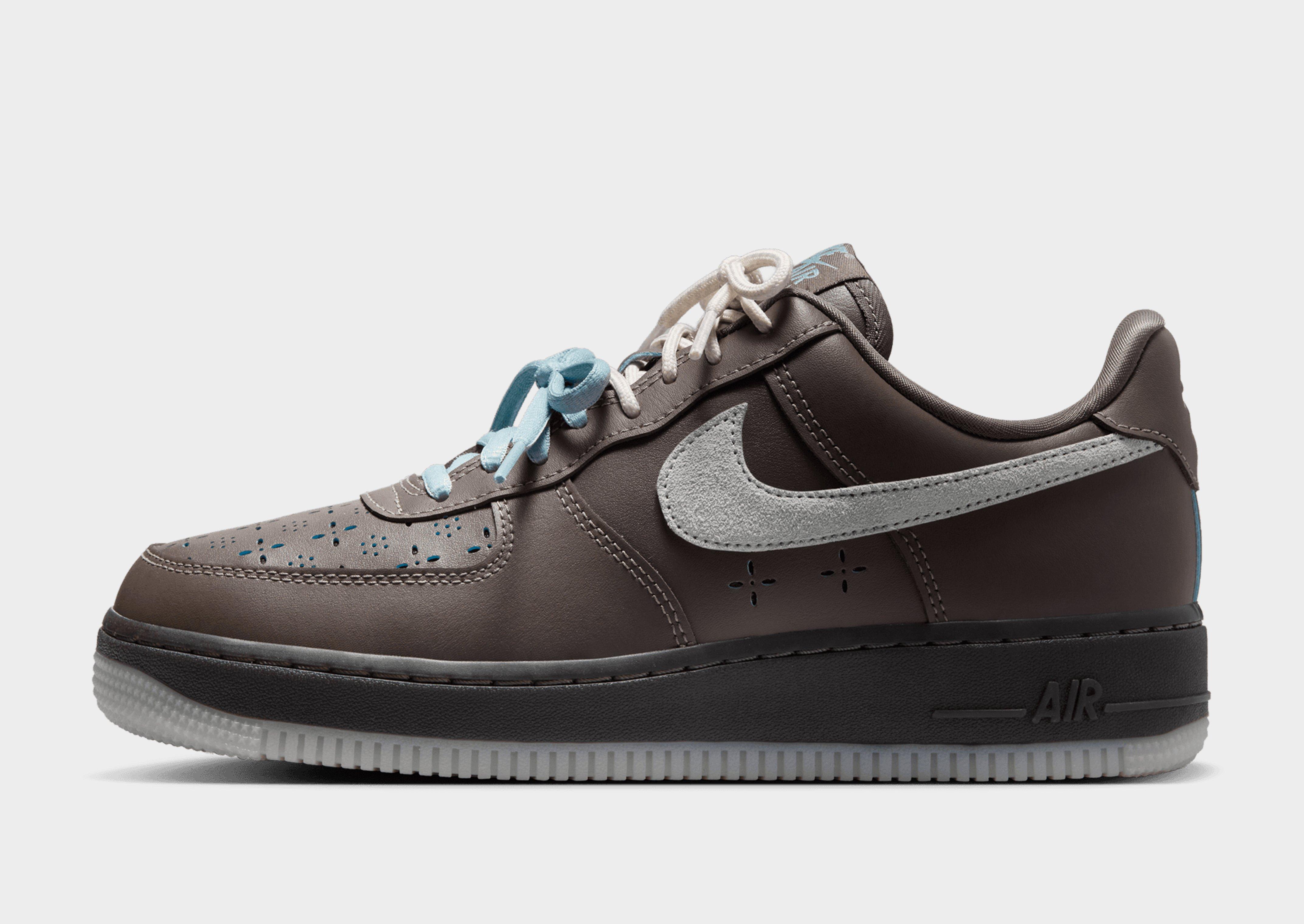 The women's Nike Air Force 1 Low LV8 in Brown with Blue and Cream is a premium materials update on the sneaker icon that never goes out of style. The LV8 designation signals an elevated version of the classic AF1, and this iteration delivers with a rich textured upper in warm brown tones contrasted by Blue and Cream detail work that gives it a considered, fashion-forward identity. A full-length Nike Air cushioning unit underfoot delivers the legendary Air Force 1 comfort, and the rubber outsole provides durable, dependable traction. A women's Nike Air Force 1 Low for those who take their classic sneaker game seriously. Style Code: IR5690-256