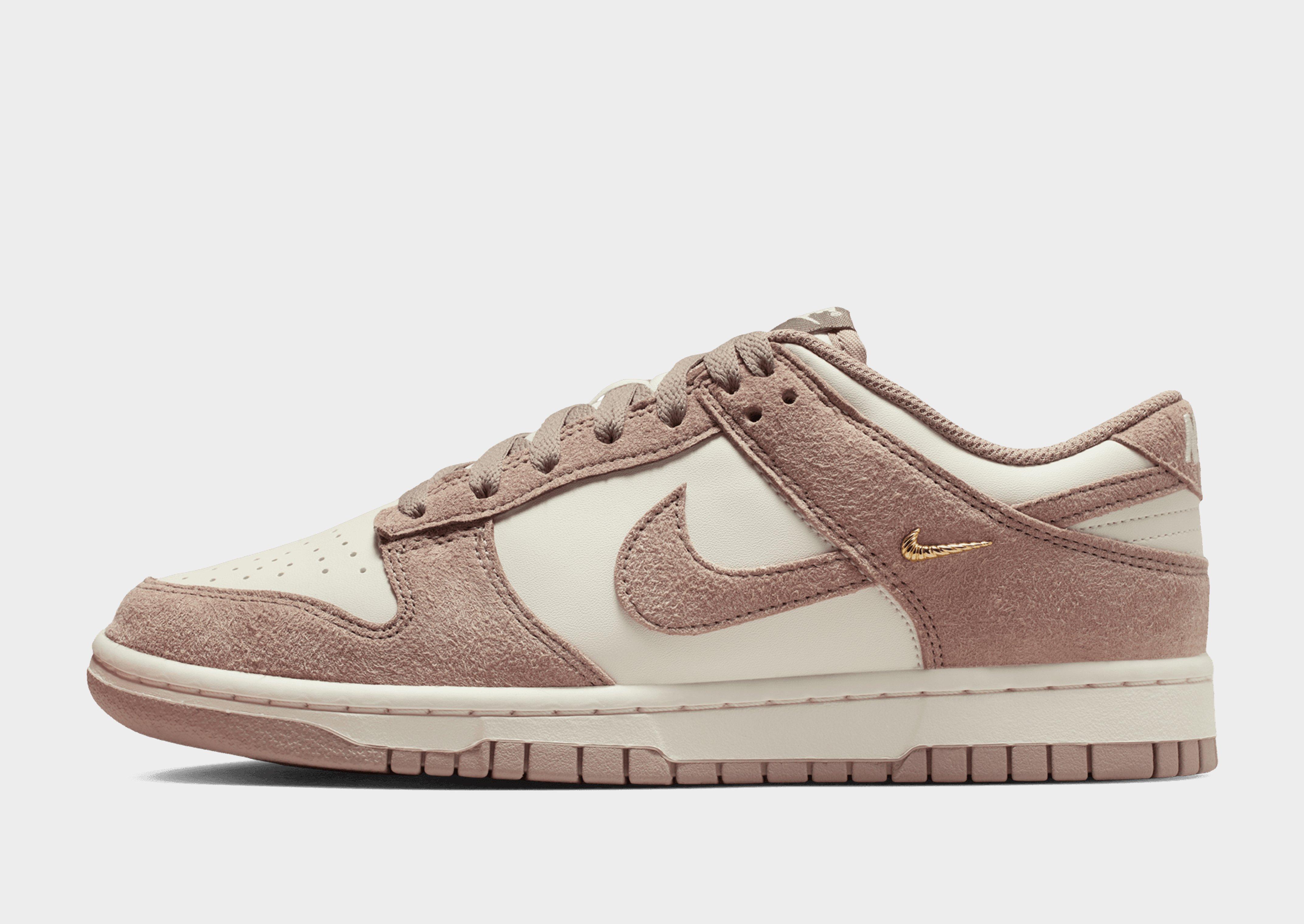 Inspired by b-ball style, these women's Dunk Low shoes from Nike are back from '85. These low-profile sneakers have a premium leather and synthetic upper keeping the OG design lines. They come in a Brown and Sail colourway with metallic gold mini-Swoosh, and feature a tonal lace-up fastening for a locked in fit. With breathable perforations to the toe box, these shoes are sat on a soft foam midsole for lightweight cushioning and maximum comfort. Finished with a grippy rubber tread for traction on the courts, signature Nike branding and the iconic Swoosh logo to the sidewalls. Style Code: IB4417-105