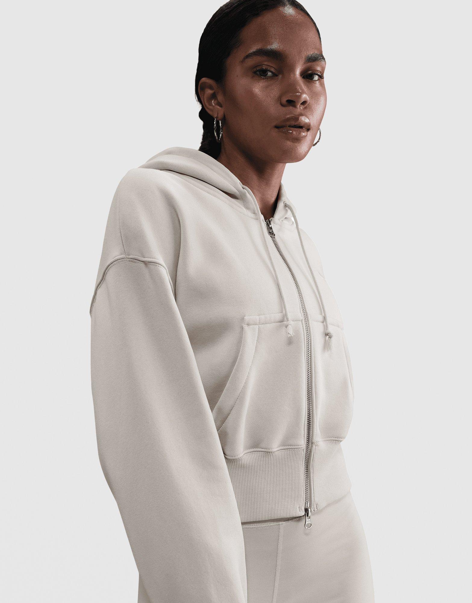 The women's Nike Phoenix Fleece Full-Zip Trend Hooded Top has become a wardrobe staple for good reason - its midweight fleece hits the sweet spot between cosy and structured. Made from 80% cotton and 20% polyester brushed fleece, it feels ultra-soft on the inside while holding its shape on the outside. The Light Brown colourway with White details plays directly into the current trend for warm, neutral tones that pair naturally with matching Nike Phoenix Fleece bottoms. A two-way zip, loose cropped fit and embroidered Swoosh logo make it as polished as it is practical. Style Code: HV2426-104