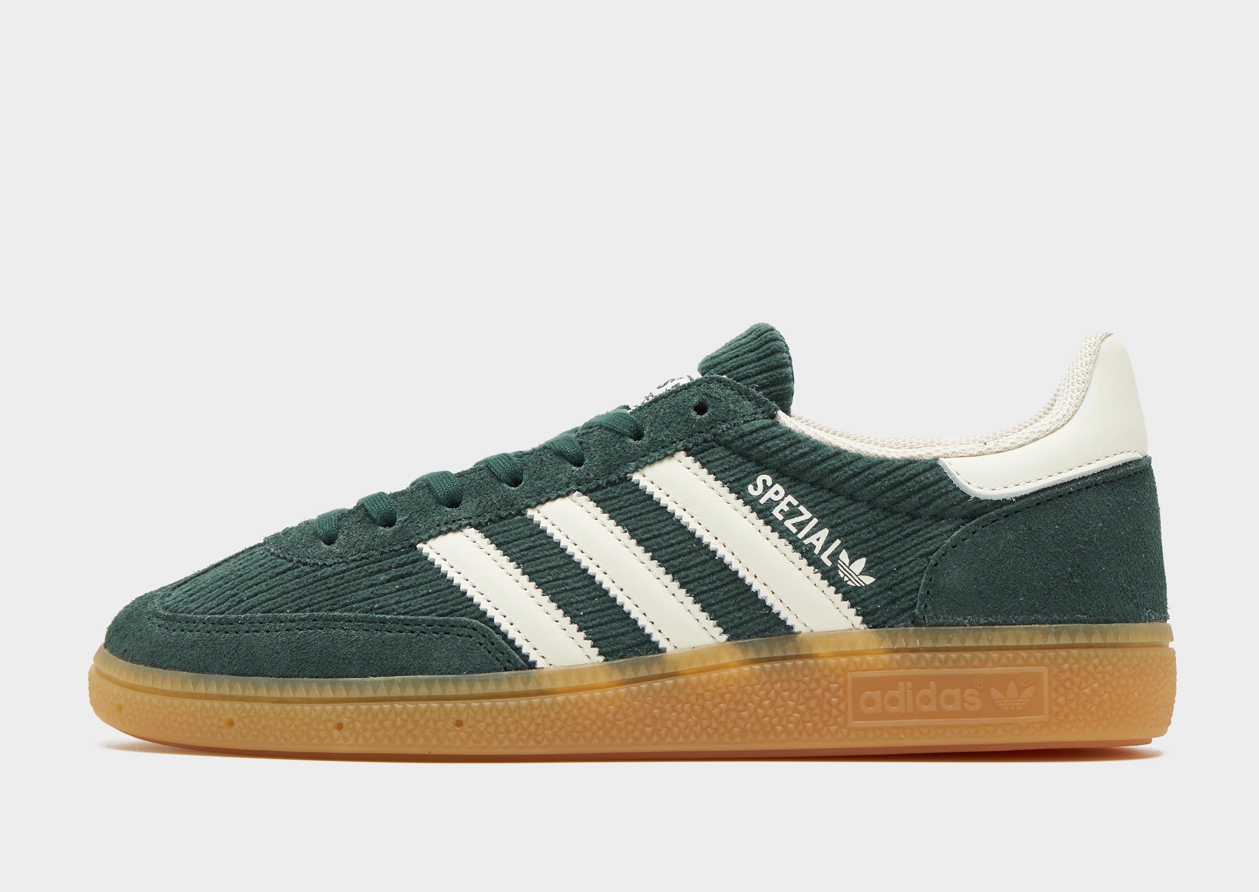 From the terrace to the street, rep a classic look with these women's Handball Spezial shoes from adidas Originals. First introduced in 1979 for the speedy handball courts of Germany, the simple yet stylish silhouette quickly made it a go-to, iconic trainer. Landing in a Green colourway, these sneakers have an upper made with suede and nylon for durable wear. They feature a lace fastening with a padded ankle collar for alocked-in fit and sit on a lightweight midsole. With a gum rubber outsole for total traction, they're signed off with signature Adi 3-Stripes to the sidewalls.