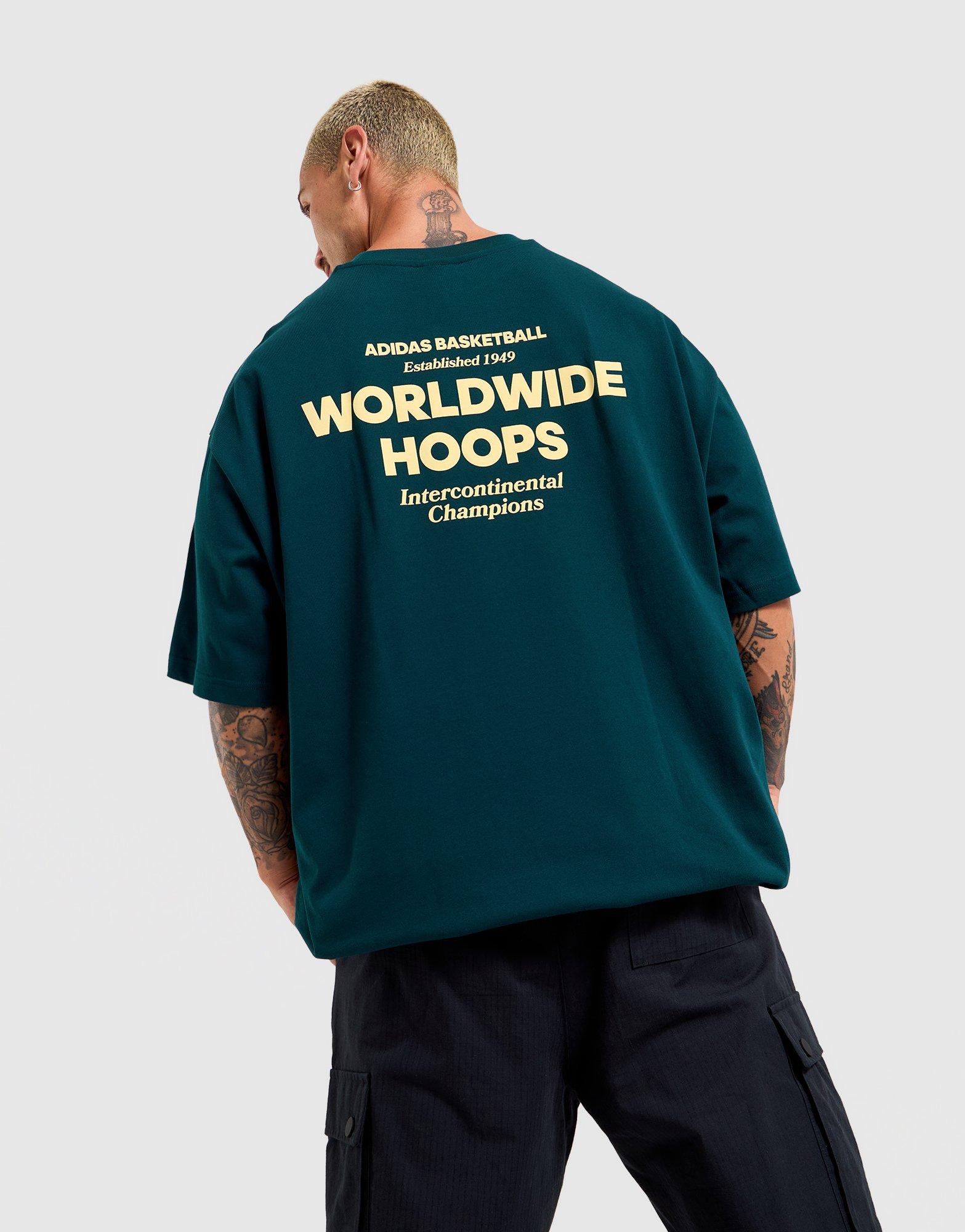 This adidas t-shirt celebrates the worldwide community of hoopers. Made from soft cotton-blend jersey, it keeps you comfortable whether you're representing at your local gym or just kicking back at home. The back graphic brings everyone in for the win.